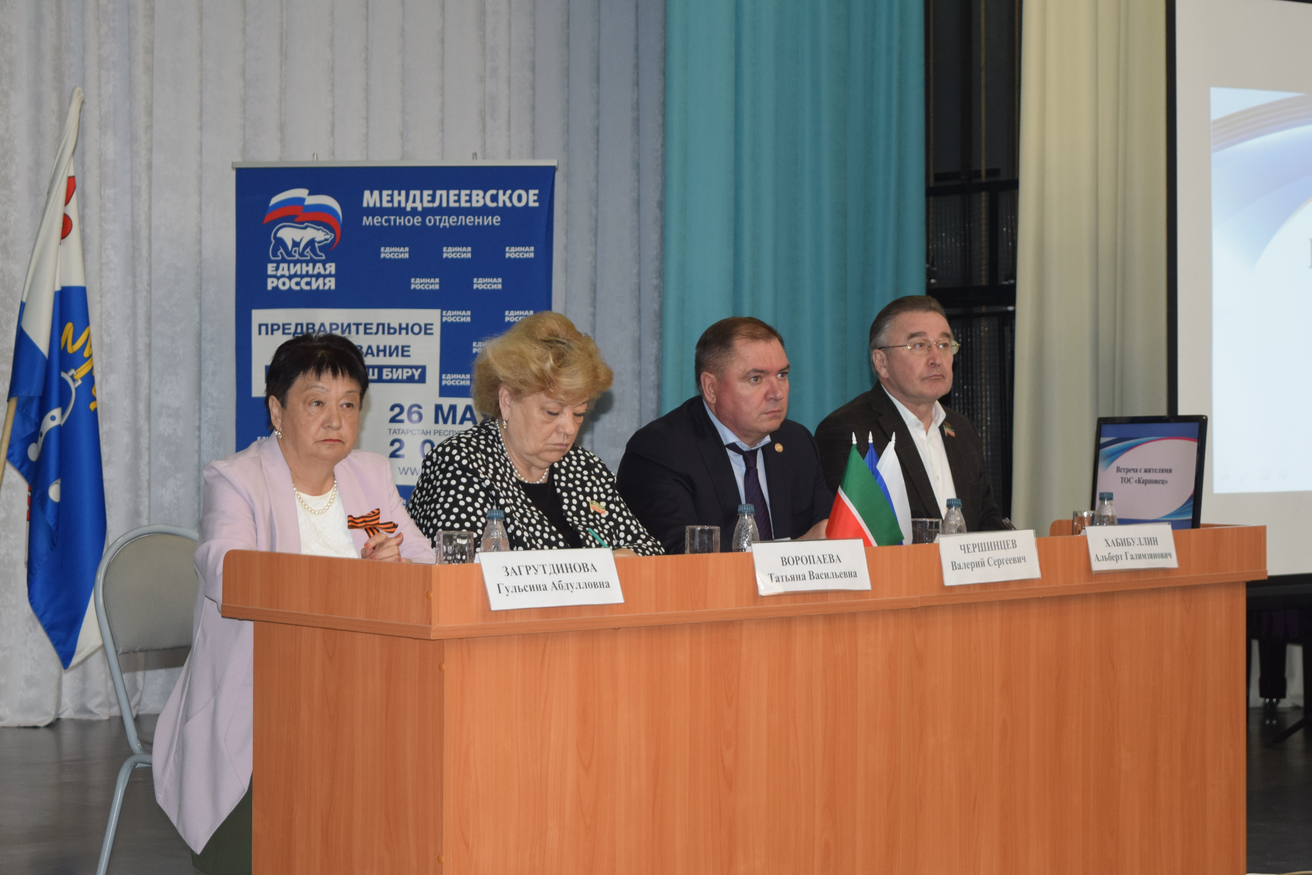 Во встрече приняли участие: Депутаты Государственного Совета РТ Альберт Хабибуллин и Татьяна Воропаева.Глава Менделеевского муниципального района Валерий Чершинцев , председатель ТОС "Карповец" Гульсина Загрутдинова.