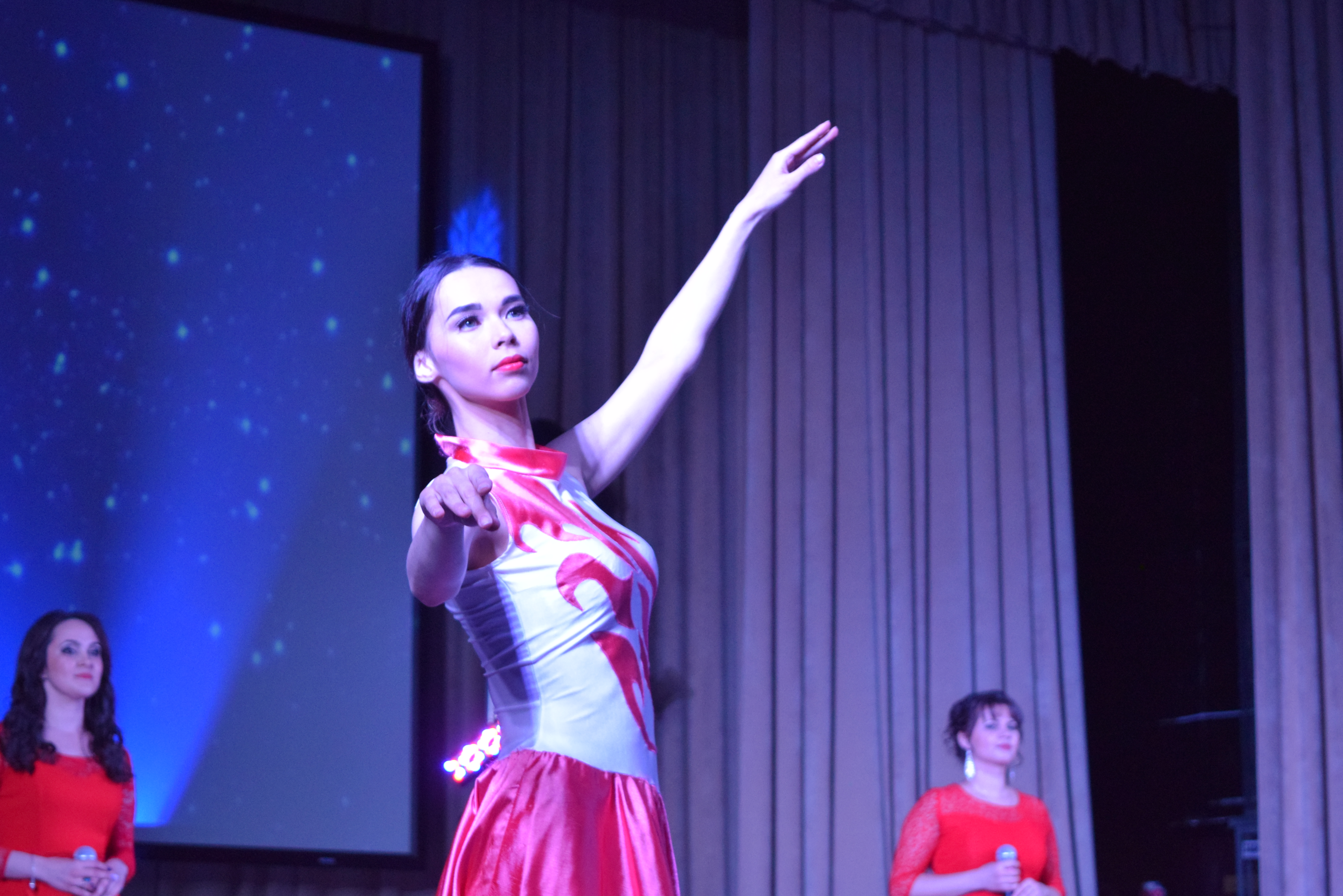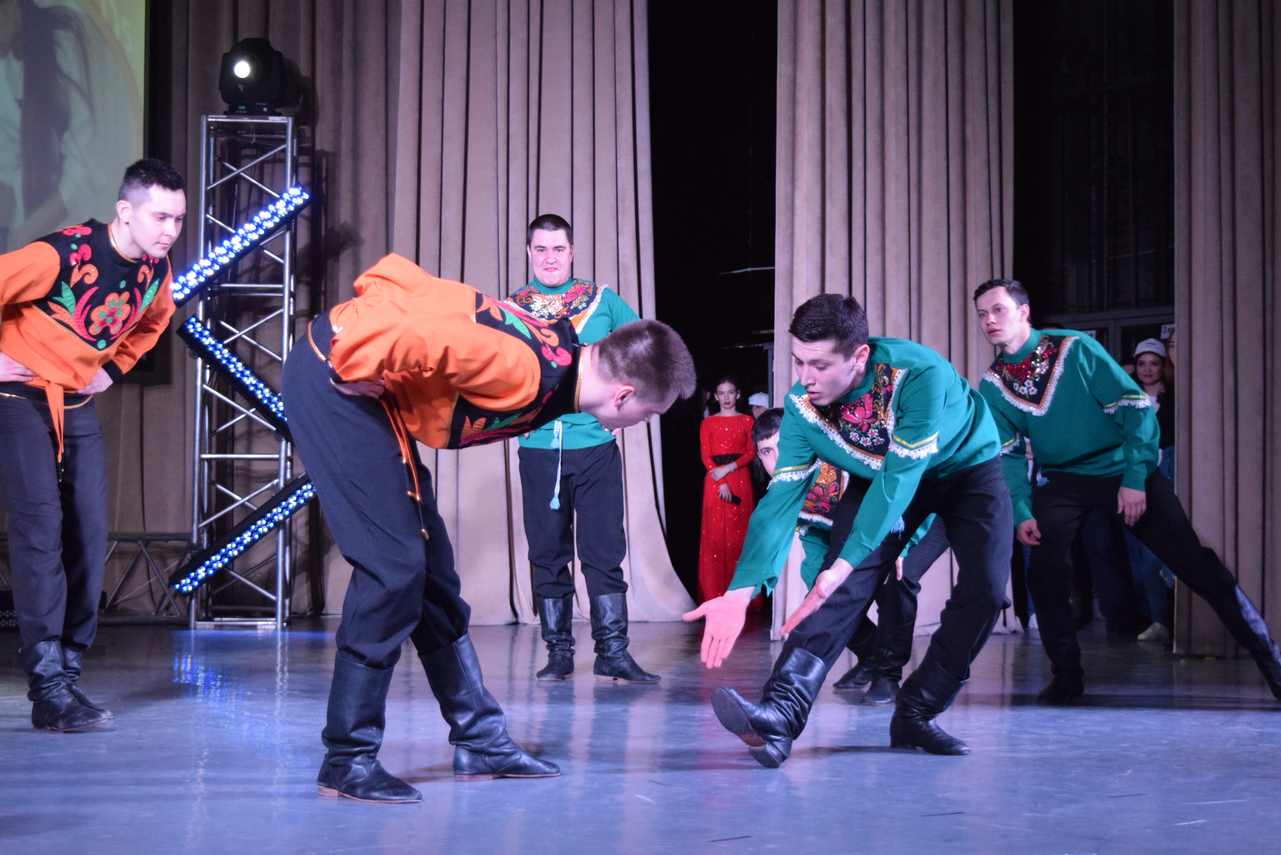 Особенно запомнились композиция «Менделеевск — город химиков», хореографические номера «Случай на ранчо», «Карма» в исполнении танцевального коллектива предприятий и коллектива современного танца, а также «Красотка» от вокального ансамбля и сценка «Слесаря» театрального коллектива.