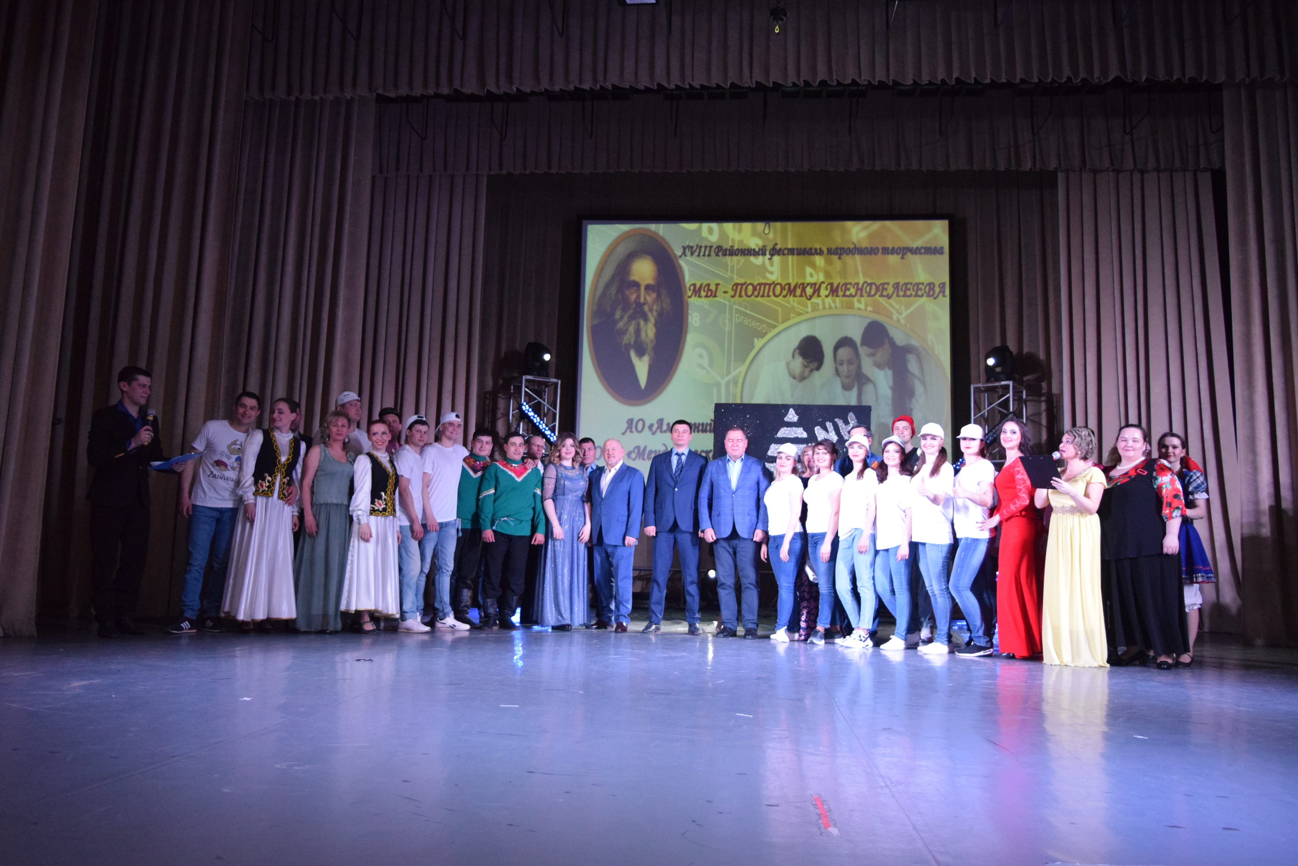 В ДК им Гассара состоялся Фестиваль «Мы − потомки Менделеева» с участием сотрудников «Менделеевсказот» и «Аммоний».С увлекательными номерами,танцами ,песнями и юмористическими сценками выступили сотрудники заводов.