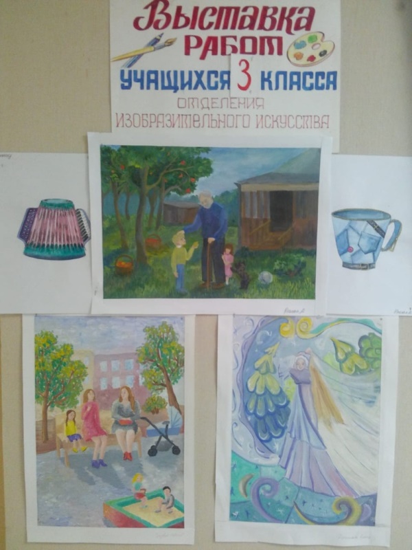 На 2-м этаже Детской школы искусств проходит выставка работ обучающихся 3-го класса отделения изобразительных искусств. На ней представлены лучшие работы юных художников за первое полугодие 2019 года по рисунку, живописи, станковой композиции и дизайну. Каждый юный художник показал в своих работах свое мастерство исполнения и умение владением различными художественными техниками и материалами. Особенно интересны работы по станковой композиции и дизайну.