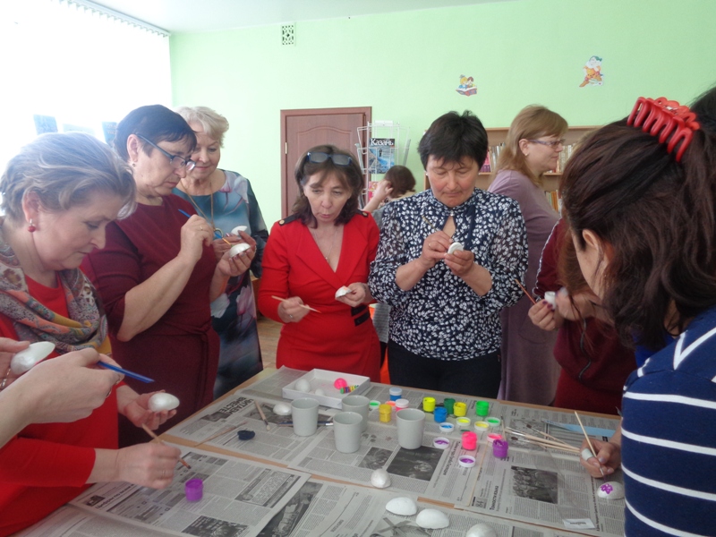 На семинаре состоялись выступления «Библиотека – центр краеведческой информации» /ведущий библиотекарь Тихоновской сельской библиотеки Медведева Н.С./, «Сохраняем национальные традиции»/библиотекарь Енабердинской сельской библиотеки Степанова В.С./, «Клубы по интересам: от замысла к воплощению» /библиотекарь Тат-Челнинской сельской библиотеки Шишова Е.Б./, «Новые формы библиотечной работы» / ведущий библиотекарь Ильнетской сельской библиотеки Семякова Татьяна Николаевна/, «Библиотека – территория творчества» библиотекарь Мунайкинской сельской библиотеки Ахмедовой Н.В./. Библиотекари приняли участие в мастер-классе по росписи пасхальных яиц.