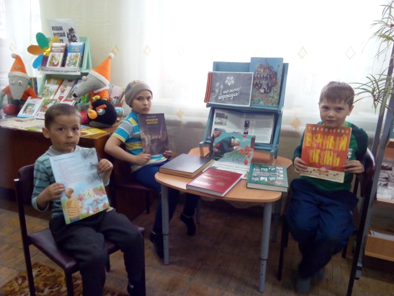 Ребята познакомились с героями нашего района, которые получили Золотую звезду героя, узнали, как маленькие дети помогали матерям тут за линией фронта, и как еще дети воевали рядом с солдатами и в партизанах. В конце литературного часа пошли дружно сыграть мачт Победы за своих дедов, все получили сладкие призы.