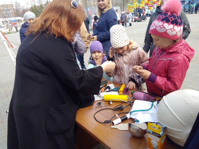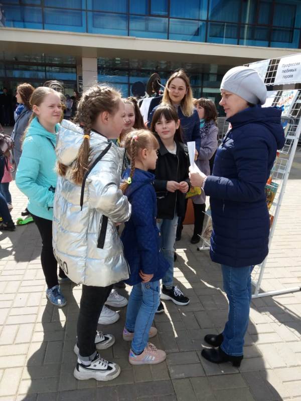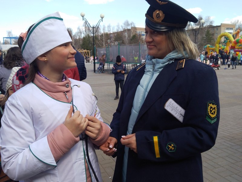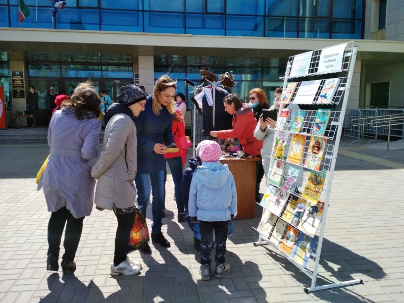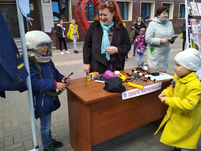 В Первомайский праздник День Весны и Труда Центральная и Детская библиотеки провели на площади Менделеева игровую программу «В мире профессий».