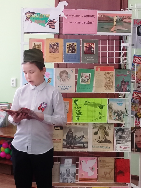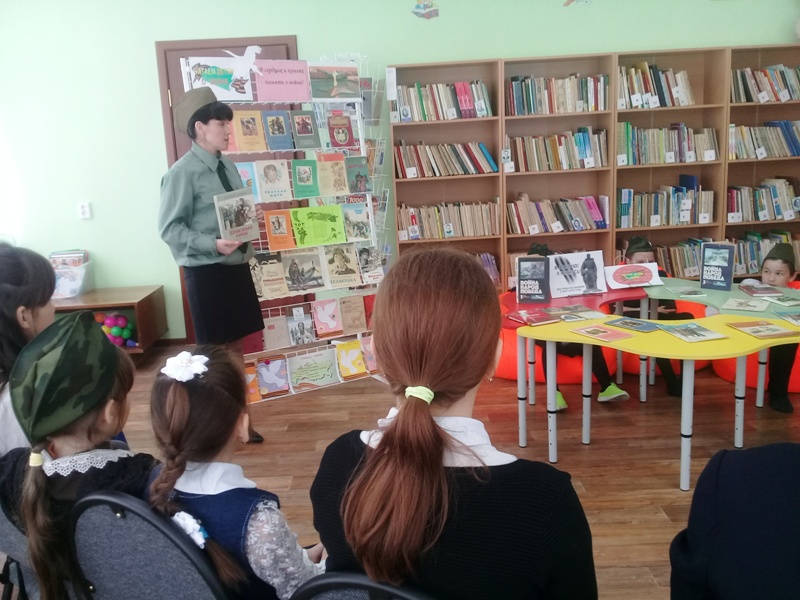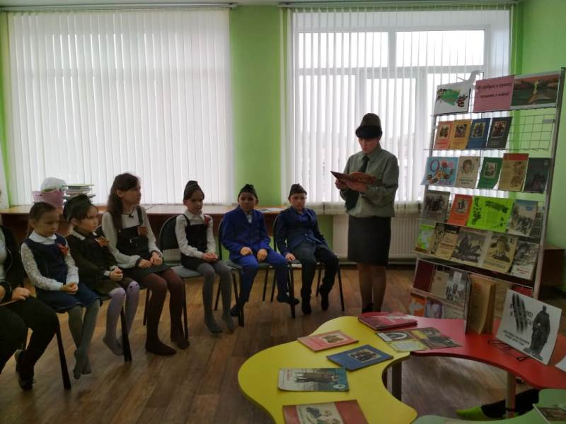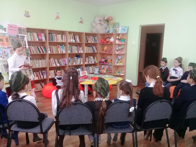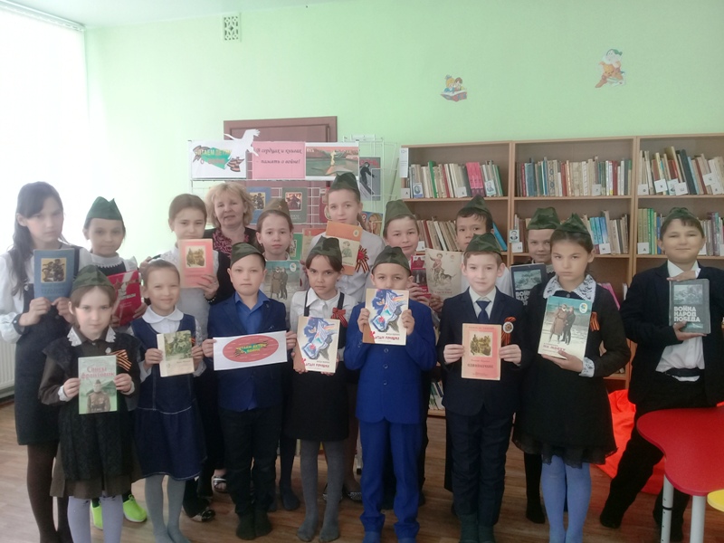 В рамках акции в библиотеке был проведен урок мужества «Пусть поколения помнят». Была оформлена книжная выставка «В сердцах и книгах память о войне». Библиотекарь познакомила ребят с творчеством А.Митяева. Были прочитаны его произведения «Красный урок», «Победили». В ходе мероприятия из книги А.И.Печерской «Дети – герои Великой Отечественной войны» ребята узнали о героях пионерах и их героических подвигах: Зине Портновой, Лене Голикове, Ларе Михеенко. Ребятам было интересно узнать о фронтовых письмах и почему их складывали треугольником. В конце мероприятия ребята познакомились с книгами с выставки и взяли их почитать домой.