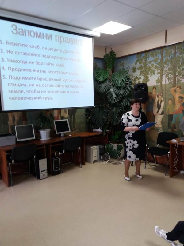 Библиотекарь Сырышева Т.Н. рассказала об истинной цене хлеба. О том, что сравнительно недорогие булки и буханки вобрали в себя великий труд людей многих профессий. Ребята размышляли, почему хлеб занимает такое важное место в жизни человека, узнали, чем являлся хлеб для ленинградцев во время блокады, заслушали отрывок из воспоминаний детей блокадного Ленинграда. Разбирали пословицы и отгадывали загадки о хлебе. Говорили о правилах обращения с хлебом. Вниманию ребят была представлена книжная выставка «От зерна до каравая». Такие мероприятия вызывают у детей уважительное и благодарное отношение к труду людей, принимающих участие в выращивании и производстве хлеба, к бережному отношению к хлебу и любви к книге, источнику всех мудрых знаний.