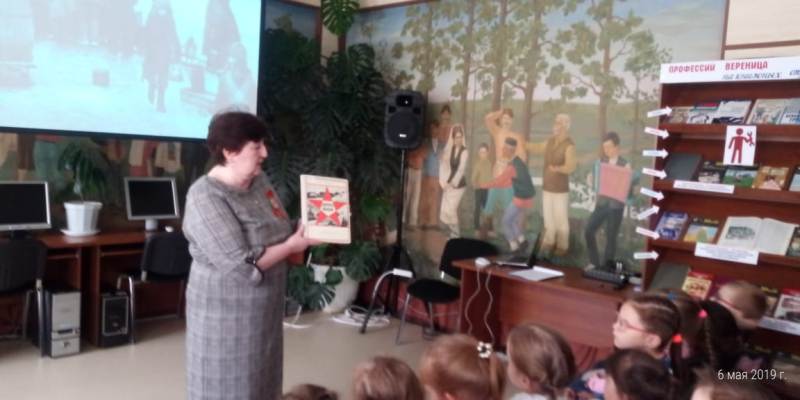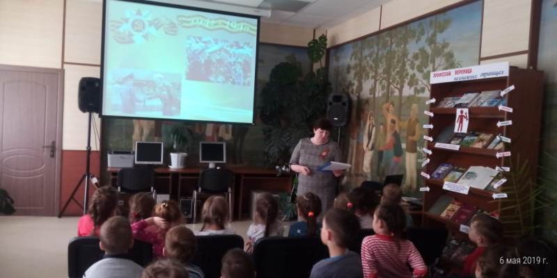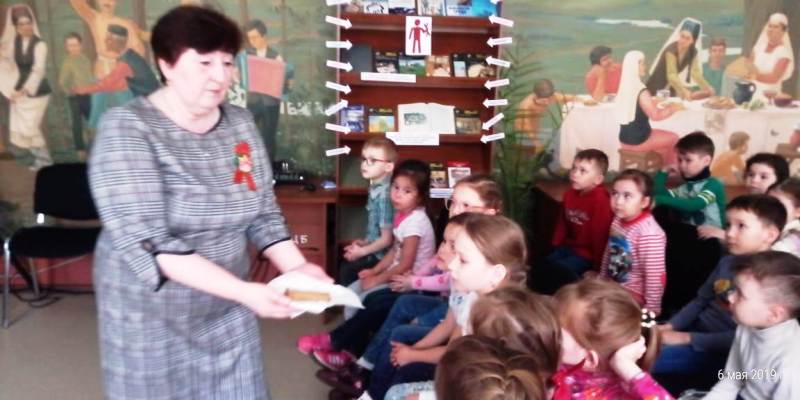 Библиотекарь Сырышева Т.Н. рассказала о том, что 22 июня 1941 года фашистская Германия без объявления войны напала на нашу Страну. Фашисты бросали бомбы на спящие города, обстреливали из орудий тихие деревни, поджигали поля. Они не разбирали, где взрослые, где дети - всех убивали на своем пути. По всей стране мужчины, женщины и дети встали на защиту своей Родины. Дети лишились детства. Девчонки и мальчишки уходили в партизаны. Многие из них совершали подвиги во имя Победы ценой собственной жизни. Долгих четыре года длилась эта кровопролитная война – это 1418 дней и ночей! Более 20 миллионов погибших людей! Во время войны наши люди терпели голод, холод.