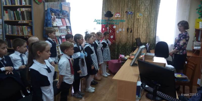 Библиотекарь Е.Назарова поздравила участников акции – учащихся 1 «В» класса школа №1 (кл.рук.Мухамадеева Т.В.) с наступающим праздником Днем Победы, рассказала о его истории и значении для нашего народа. В рамках акции на абонементе была оформлена книжная выставка «Читать, знать, помнить». Для громкого чтения была выбрана книга С.Алексеева «Подвиг у Дубосекова». Ребята узнали о подвигах солдат в годы войны, ответили на вопросы библиотекаря, высказали свои мнения о прочитанном. Они проявили интерес к произведениям о войне и взяли книги для чтения дома. Библиотечная акция «Читаем детям о войне» – очень нужное и доброе дело. Книги – важный и ценный источник, помогающий сохранить память о героическом прошлом нашей Родины, подвиге народа, защитившего Родину от врагов.