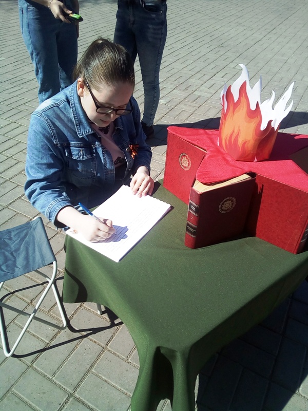 Вот некоторые строки «Всех людей горожан от всей души поздравляю с Днем победы! Чтим и помним павших в Великой Отечественной войне, они подарили нам великолепную жизнь….Семья Исаковых», «Мы все против войны! Всем желаю здоровья, добрых дел, успехов везде. С праздником мои дорогие. Гареева Ф.Х». Были слова благодарности и организаторам этой акции «Спасибо за такое мероприятие! С праздником!». И мы, сотрудники библиотеки, благодарим всех кто подержал эту акцию, взял в руки книгу и прочитал строки о событиях той страшной войны.