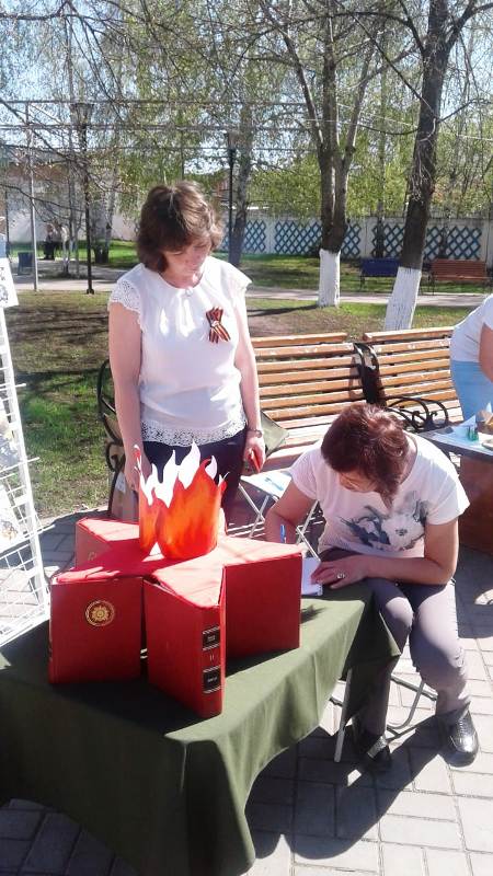 9 мая Центральная и Детская библиотеки организовали в Ленинском сквере тематическую площадку, посвященную Дню Победы.