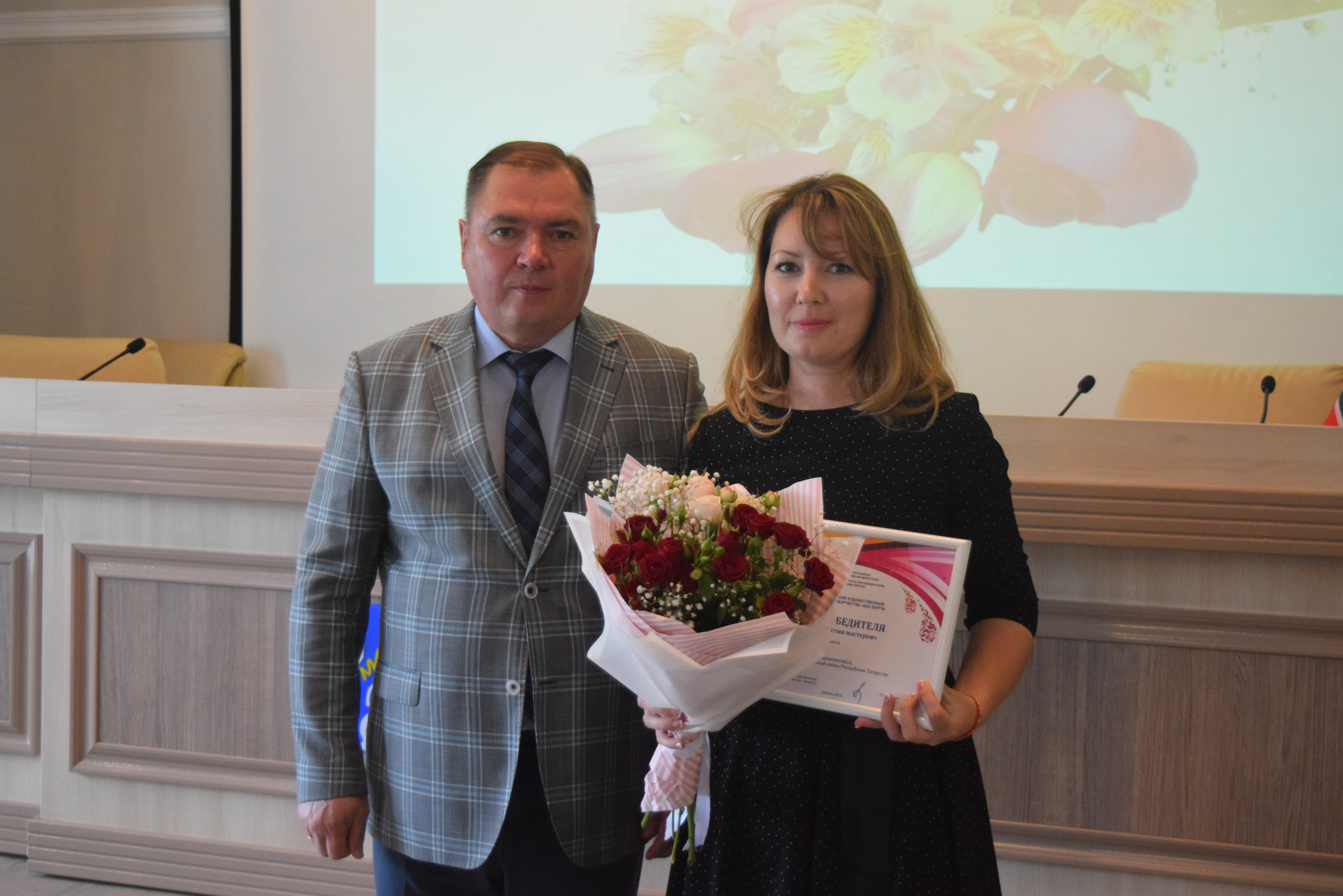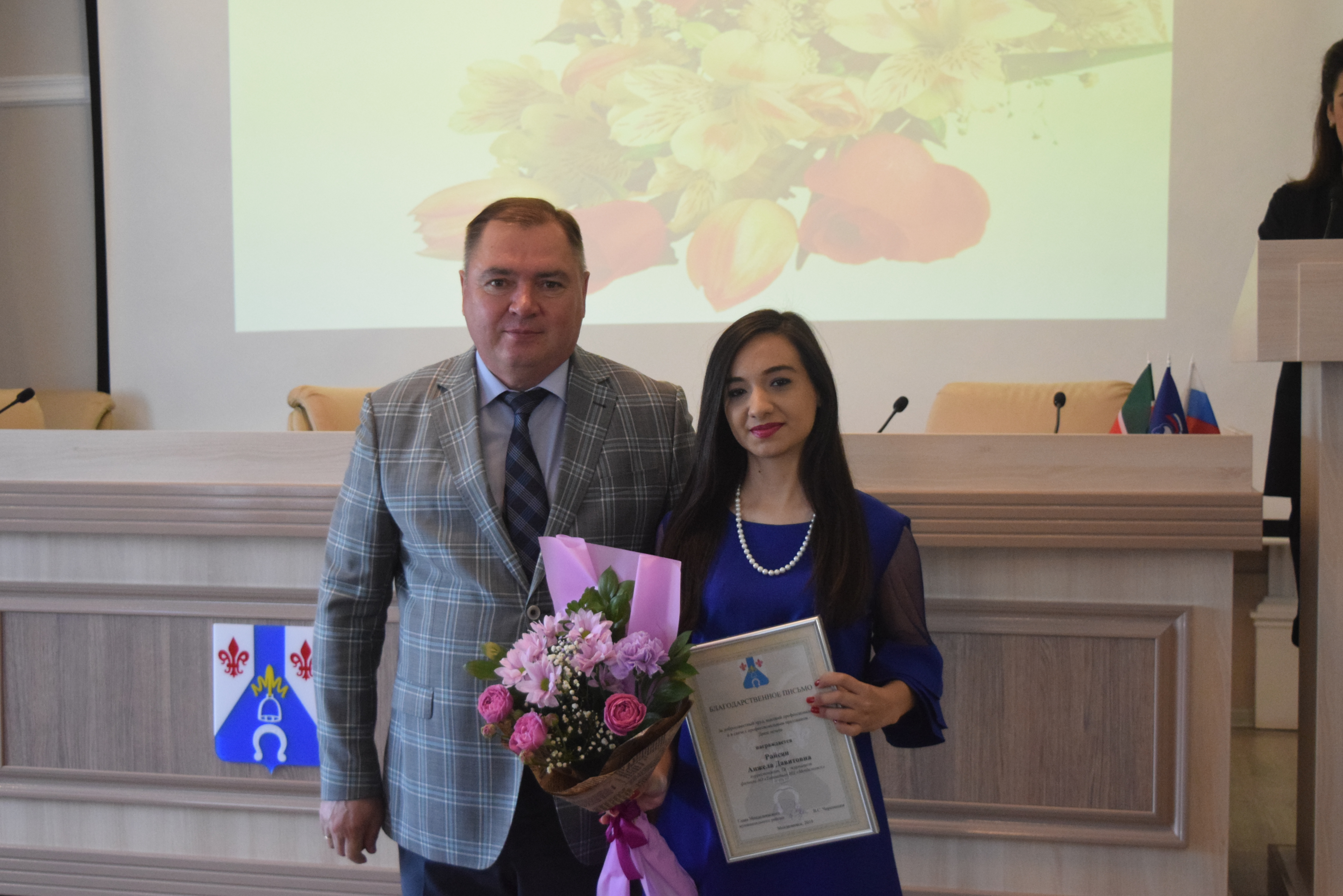 Почетной грамотой Главы района за долголетний добросовестный труд в средствах массовой информации в районных газетах "Менделеевские новости", "Менделеевск яңалыклары" и в связи с Днем печати Республики Татарстан, награждается Мухаметханова Асия Фатиховна – корреспондент редакции Акционерного общества «Татмедиа» Информационный центр «Менделеевск».