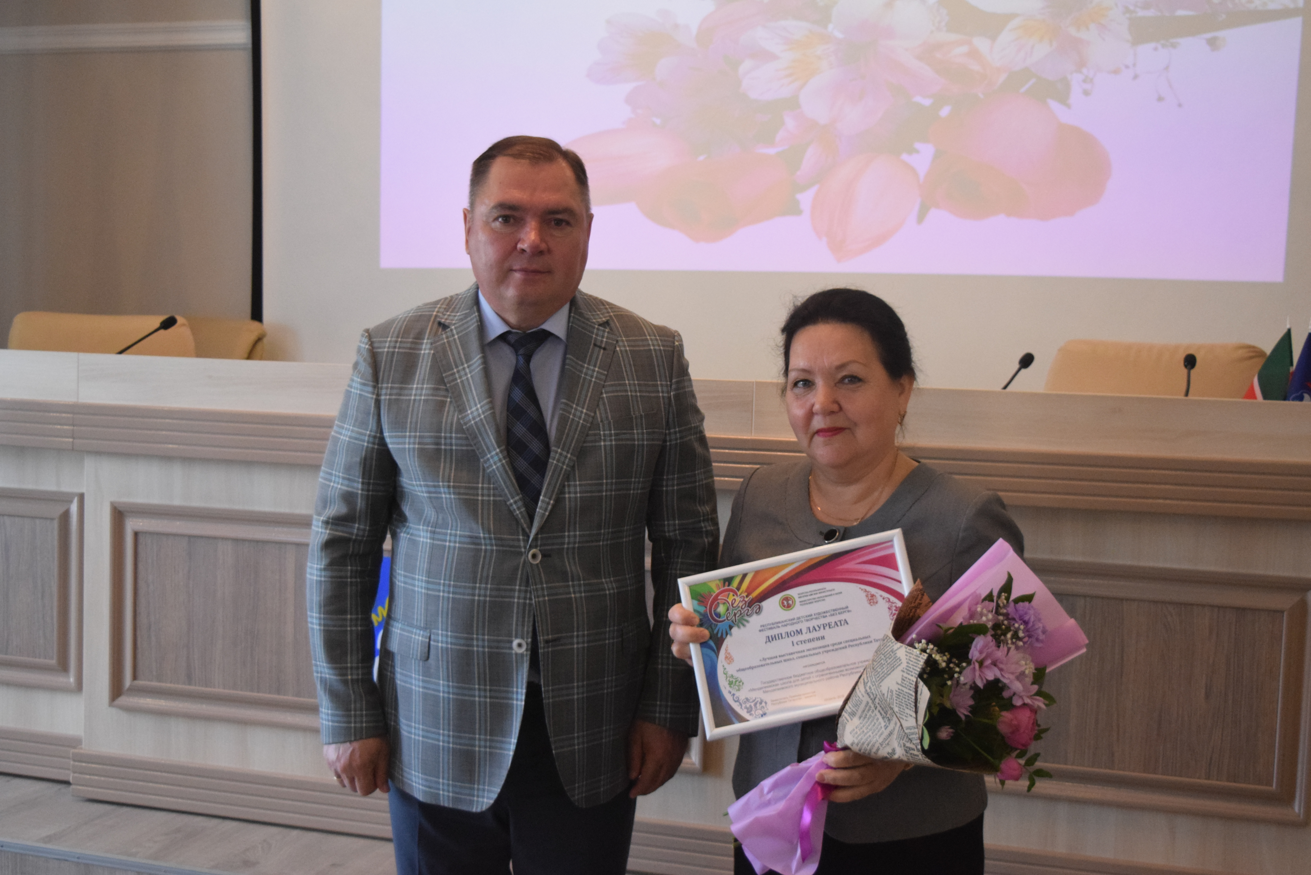 Дипломом лауреата 1 степени в номинации «Лучшая выставочная экспозиция среди специальных общеобразовательных школ, социальных учреждений РТ», награждается "МЕНДЕЛЕЕВСКАЯ ШКОЛА ДЛЯ ДЕТЕЙ С ОГРАНИЧЕННЫМИ ВОЗМОЖНОСТЯМИ ЗДОРОВЬЯ", награду получает директор школы Салимханова Дамиря Ахмадулловна.