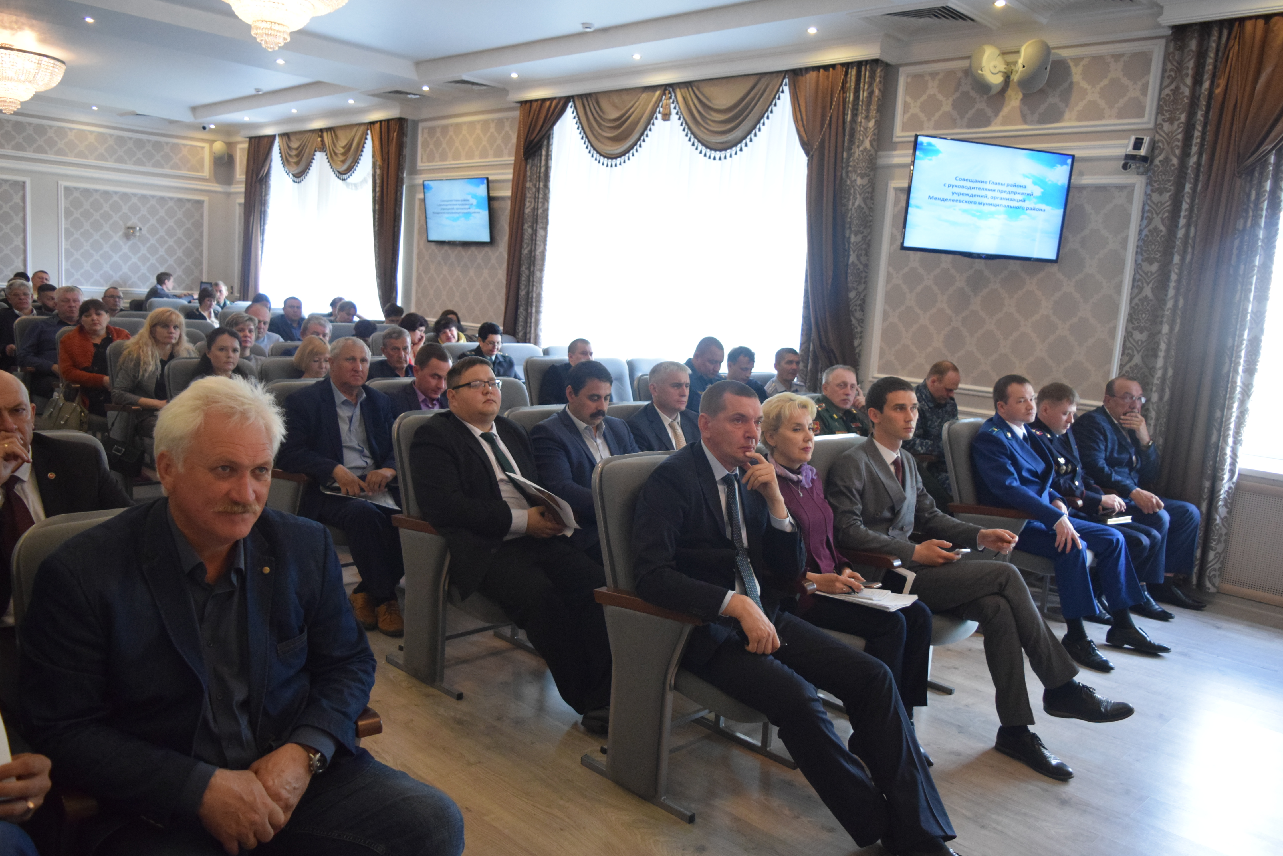 Сегодня в актовом зале администрации состоялось еженедельное Совещание с руководителями предприятий, учреждений, организаций Менделеевского муниципального района,под руководством Главы района Валерия Чершинцева.