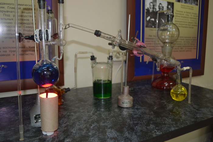 Благодаря сотрудникам химико-технологического института ФГБОУ ВО КНИТУ Валерию Насыхову и Татьяне Линьковой менделеевцы и гости города смогут увидеть аппаратные лабораторные установки времен Менделеева.