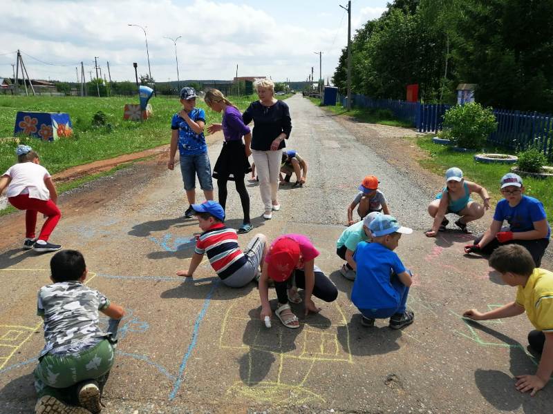 На детской площадке продолжили праздник. Провели с детишками активные игры, конкурсы, викторины. И закончилось мероприятие конкурсом на лучший рисунок на асфальте «Я рисую мир». Каждый ребенок за активное участие получил сладкие призы.