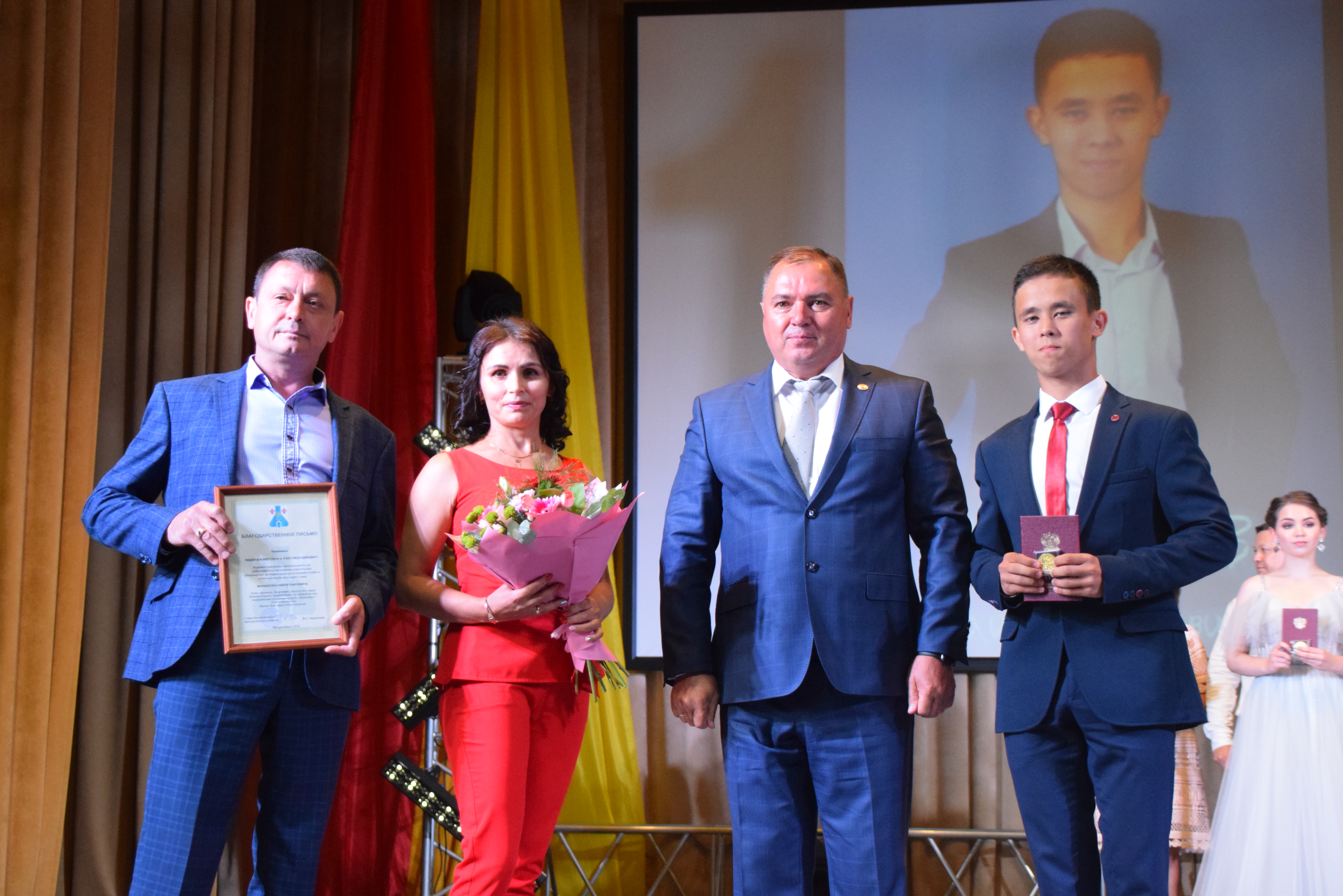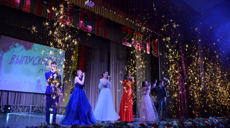 В 18.00 празднование началось на площади ДК им. С. Гассара. После шоу-программы на главной сцене, выпускники прошли по красной ковровой дорожке в актовый зал. Там их ждали концертная часть, конкурсы и самое главное – награждения медалистов. Со словами праздничных поздравлений к выпускникам обратились глава района Валерий Чершинцев, и начальник управления образования Эрнст Сафаргалиев.