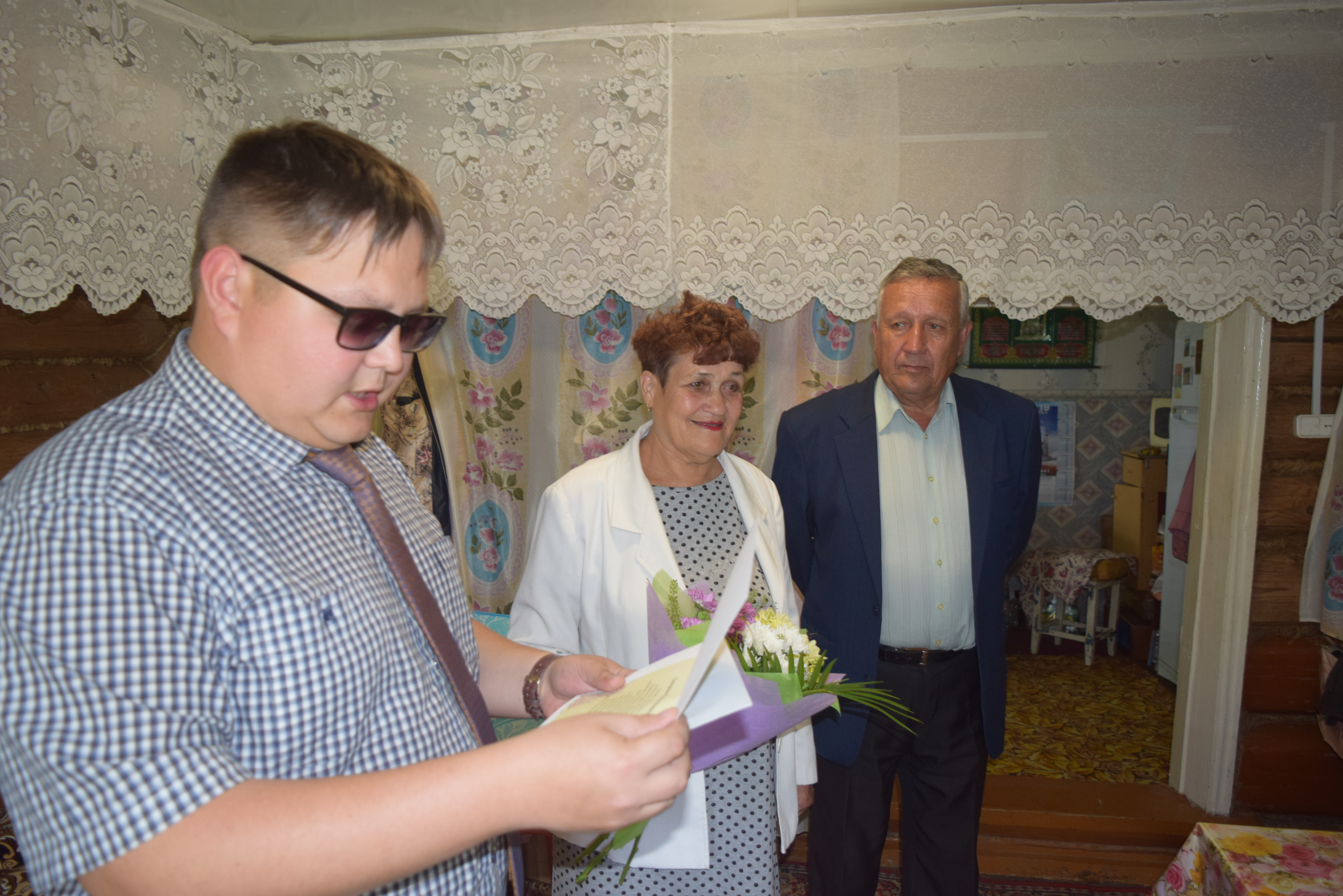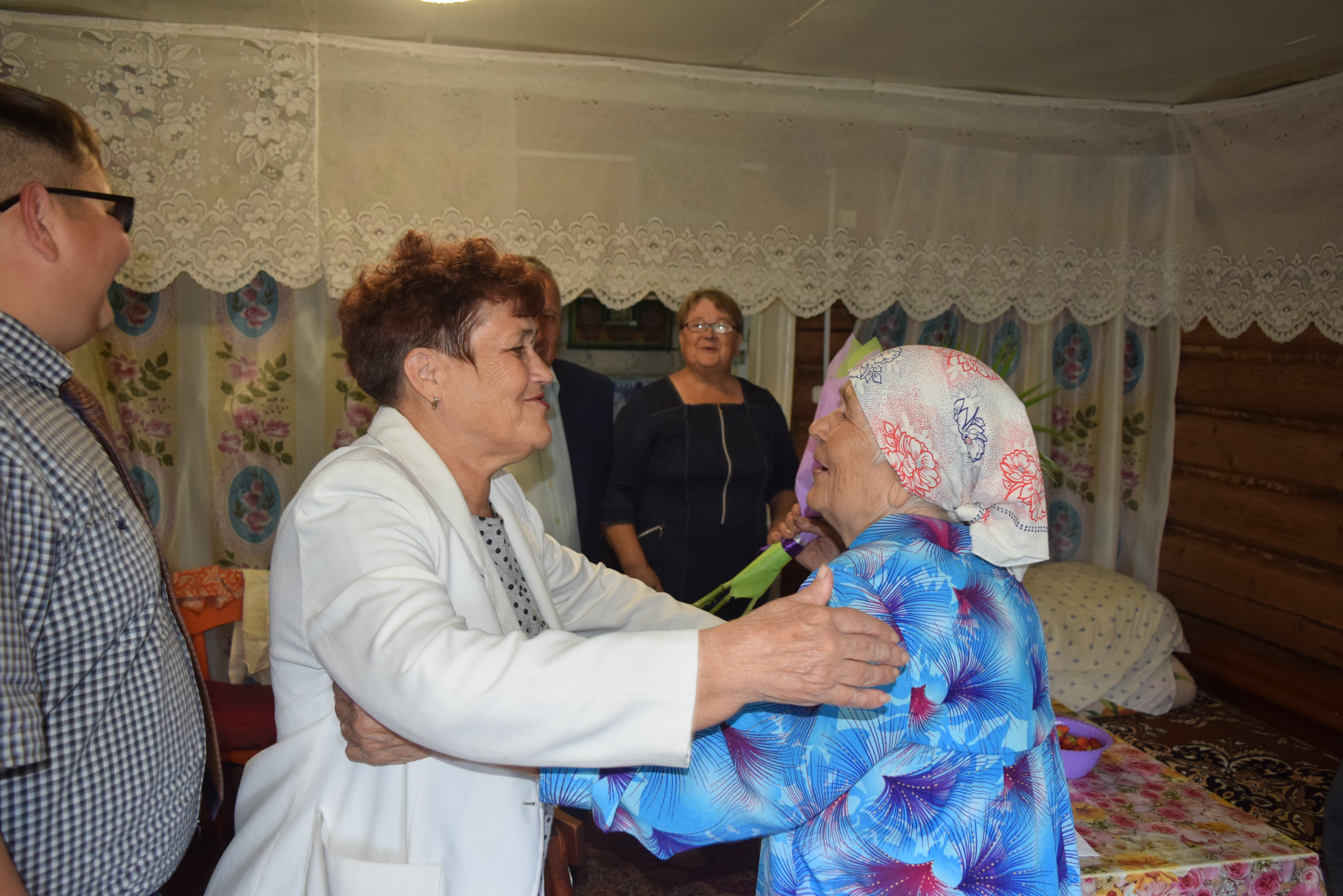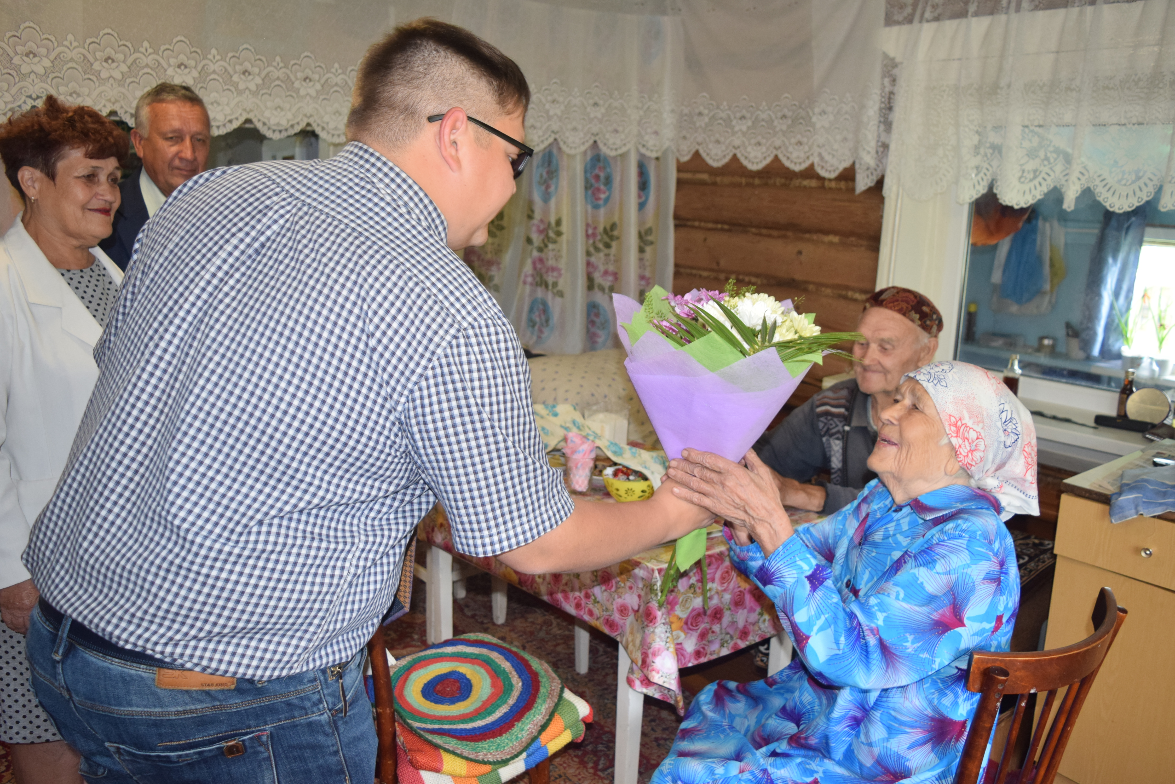 В день юбилея ее поздравил заместитель руководителя исполкома по социальным вопросам Айдар Сафаргалин,он вручил именную открытку Президента РФ Владимира Путина, букет цветов и подарок от главы района Валерия Чершинцева. К его словам присоеденилсь председатель Совета ветеранов Любовь Сорокина, Глава Енабердинского сельского поселения Евгений Никифоров.