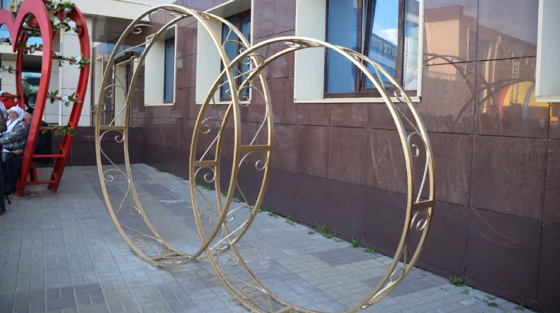 Он установлен на центральной городской площади в виде обручальных колец. Теперь эта локация станет местом притяжения менделеевцев и гостей и послужит фотозоной для молодоженов.