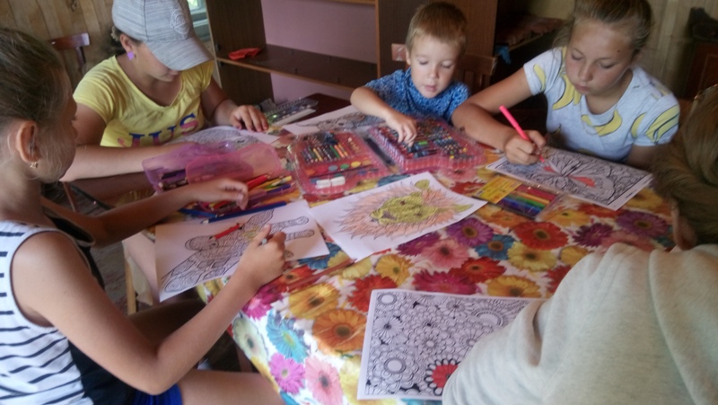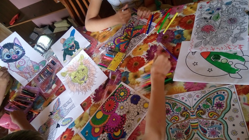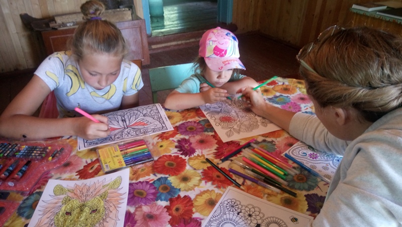 В библиотеке Нового Кокшана юные фантазеры занимались йогой, но не обычной, а с цветными карандашами и фломастерами. Библиотекарь предложила детям огромный выбор рисунков с мелкими детальками внутри, один из видов - это мандала, круг, включающий в себя множество деталей. Каждый на свой вкус должен разукрасить эти мелкие детали, чтоб в итоге получилась картина, да так, чтоб и цвета сочетались и тона, в зависимости от настроения.