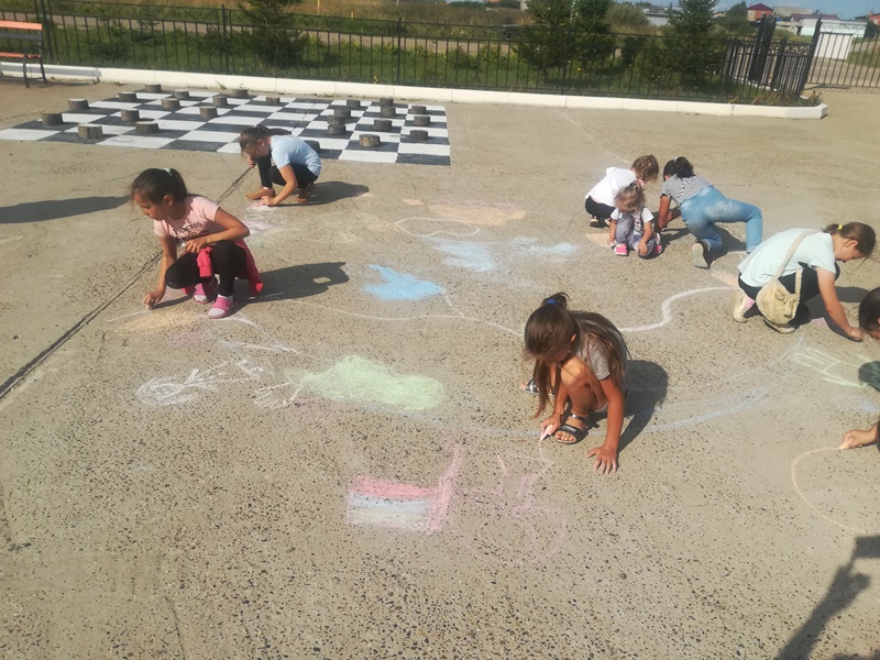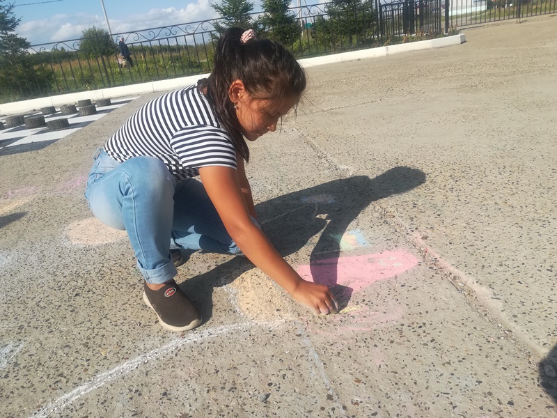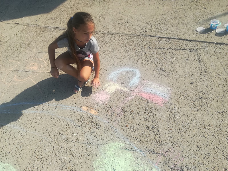 Для детей была подготовлена беседа о мире, дружбе, доброте толерантности. Далее на асфальте прошел конкурс рисунков «Дружат дети всей Земли».