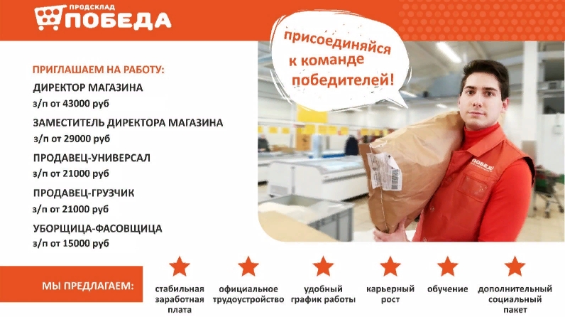 В этот день вакансии нового магазина «Победа» предложит ООО ТД «Лето», открытие которого запланировано на 19.09.2019 г.