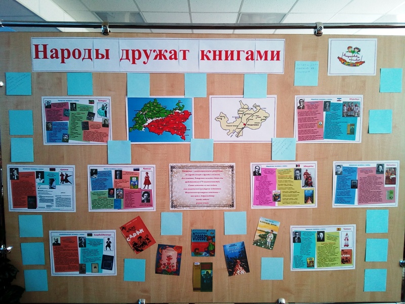 В год продвижения национальной литературы Детская библиотека при поддержке ДДН оформила библиотечный квилт «Народы дружат книгами» на котором представлена информация о писателях и книгах разных национальностей, проживающих на территории Менделеевского народа. Каждый желающий может оставить свое мнение или задать вопрос по этой теме на стикерах.