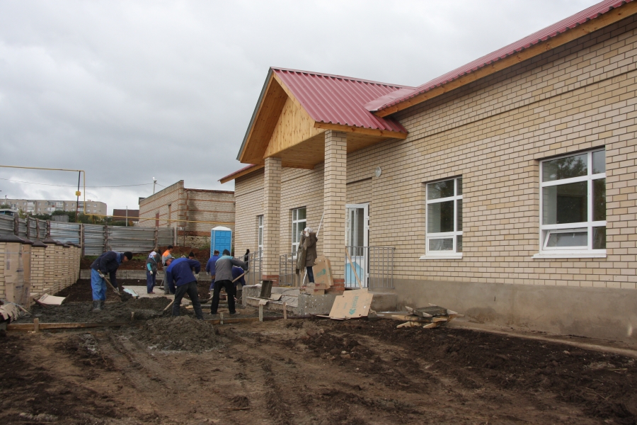 На стройке задействованы бригады ремонтно-строительного управления ОАО «Химзавод им. Л.Я.Карпова», являющегося подрядчиком. К возведению объекта они приступили в апреле текущего года. На сегодня основные строительные работы выполнены в полном объеме, подведены коммуникации. Остались некоторые штрихи по отделке комнат, коридоров и благоустройству прилегающей к зданию территории.