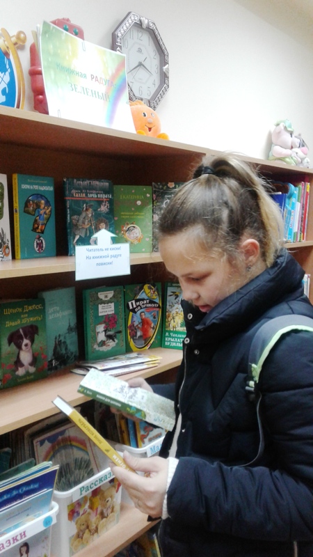 Выставка произвела на ребят неизгладимое впечатление, ведь на ней стоят книги не по смыслу, а по цвету. Дорогие друзья Детской библиотеки, предлагаем вашему вниманию «Зеленые книги», следующая неделя месяца будет красной. Пожалуйста, приходите! Они ждут вас, выстроившись в настоящую радугу. Читайте, девчонки! Читайте, мальчишки! Зеленые, желтые, красные книжки.