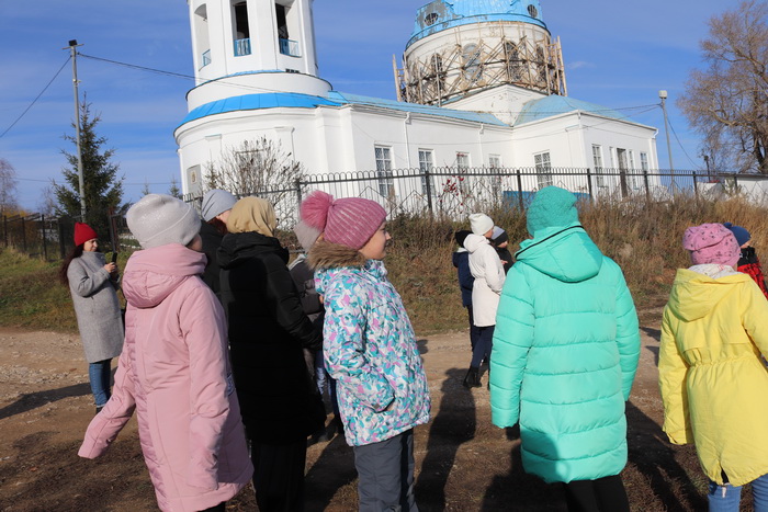 Автобусная экскурсия началась с села Тихие Горы, где ребята узнали о его истории, увидели один из архитектурных памятников - Богоявленскую церковь.