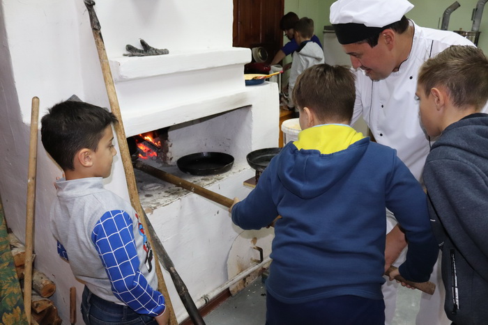 Завершением экскурсии стала интерактивная мастерская «Русская печь». Дети не только пробовали блины из печи, но и пекли их сами.