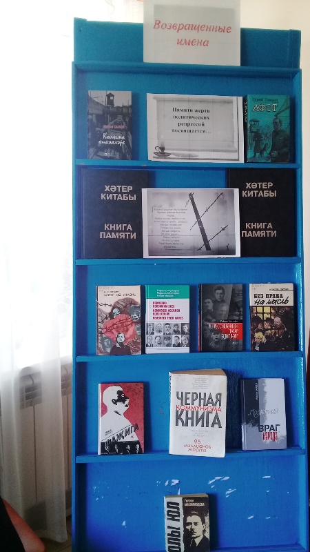 30 октября в день памяти жертв политических репрессий в России Тойгузинская библиотека организовала книжную выставку ”Возвращенные имена”.