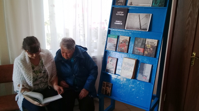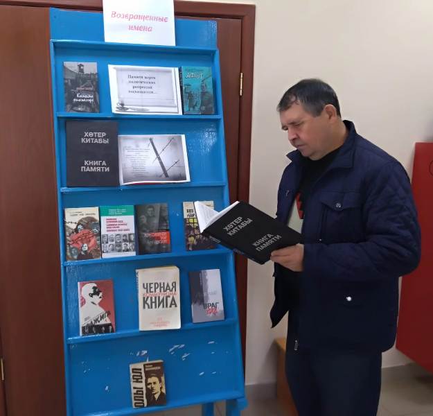 В течение дня библиотекарь Сафина А.А. знакомила посетителей библиотеки с книгами по этой теме. Она рассказала о том, что искалеченная судьба осужденных без вины людей останется черным пятном в истории страны и пожелала, чтобы такая беда больше не повторилась. Узнав о трагической судьбе писателя Гурия Тавлина, который безвинно был приговорен к 10 годам лишения свободы, постоянная читательница библиотеки Тазова Р. взяла его книгу “Напасть” почитать дома.