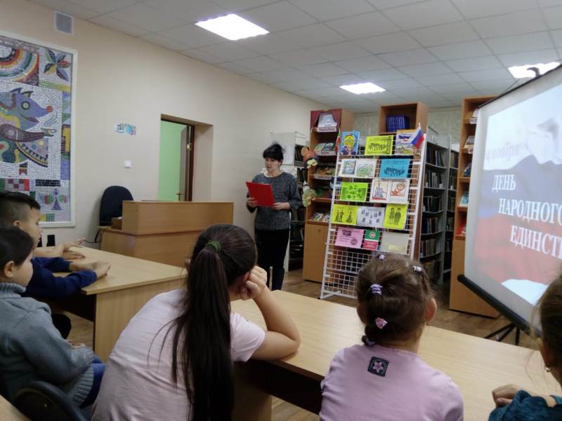 4 ноября россияне отмечают День народного единства. В связи с этим замечательным праздником, 2 ноября в Псеевской сельской библиотеке совместно с работниками СДК, со школой для ребят пришкольного лагеря «Теремок» был проведен познавательно-информационный час «Россия – родина моя».