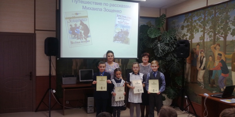 В Детской библиотеке прошел литературный час «Путешествие по произведениям Михаила Зощенко», посвященный 125 - летию со дня рождения писателя. Гостями стали учащиеся 2 «Г» кл. (кл. руководитель Бузаджи Г.Н.), 3 «В» кл. (кл. руководитель Краснова Г. Х.), 3 «А» кл. (кл. руководитель Захарова В.Ф.) школы №1.