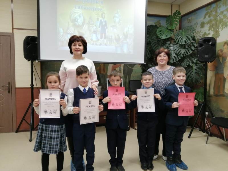 Детская библиотека для учащихся 2 «В» кл. (кл. руководитель Мухамадеева Т.В.), 2 «Б» кл. (кл. руководитель Иванова Т.А.) школы №1, 2 «А» кл. школы №3 (кл. руководитель Аликбарова А.Р.) провела игру-путешествие «Городок в табакерке», посвященную 215 - летию В. Ф. Одоевского.
