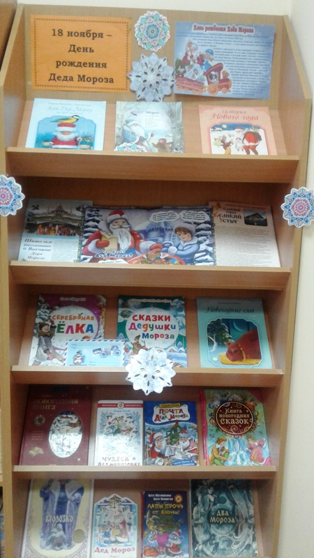 Ежегодно 18 ноября, в первый день календарной зимы, вся Россия отмечает день рождения Деда Мороза. В этот день Дед Мороз принимает поздравления и подарки от своих многочисленных друзей. Что бы отметить день рождения Деда Мороза, в Детской библиотеке оформлена выставка «С Днем рождения, Дедушка Мороз», на которой представлены книги и журналы со сказками и веселыми рассказами про виновника торжества – Деда Мороза.