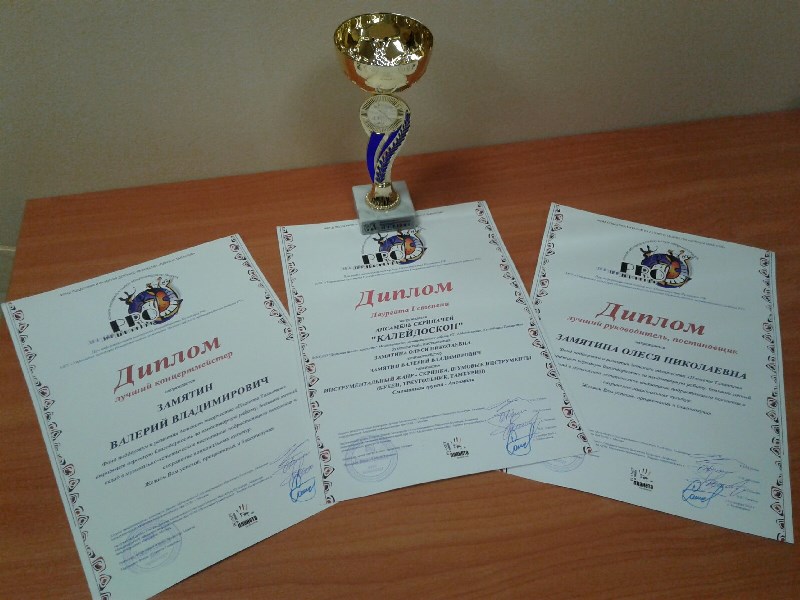 Участники ансамбля выступили в номинации «Инструментальный жанр» - смешанные инструменты. Члены жюри, в которое вошли известные деятели искусства, заслуженные артисты РФ, доценты Московского Государственного института культуры, такие как: Шихин Ю.И., Бутушин С.И., Гутман Е.Ю., высоко оценили уровень подготовки ансамбля, присудив Диплом Лауреата I степени с вручением Кубка, а также: Дипломов «Лучший руководитель» - Замятина Олеся; «Лучший концертмейстер» - Замятин Валерий.