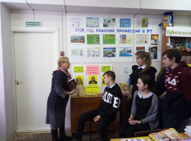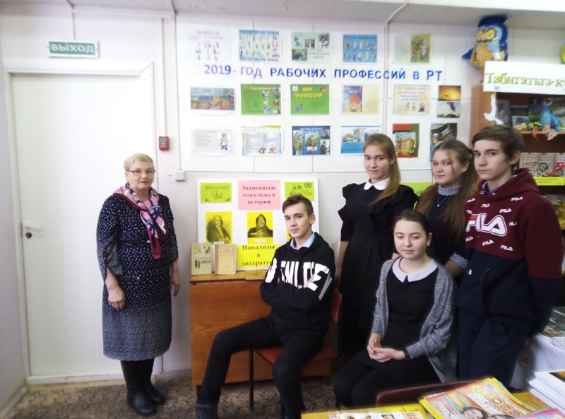 Вниманию читателей был представлен информационный стенд «Знаменитые инвалиды в истории и в литературе». В ходе мероприятия ребятам было рассказано о Международном дне инвалидов, о выдающихся людях нашей планеты, которые, к сожалению, были также серьёзно больны, но несмотря ни на что нашли в себе силы бороться за жизнь, и достигли больших побед. Здесь же ребята познакомились с биографией и творчеством татарского поэта Фаниса Яруллина..