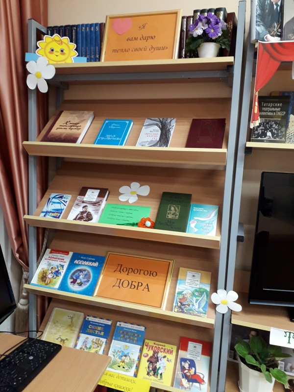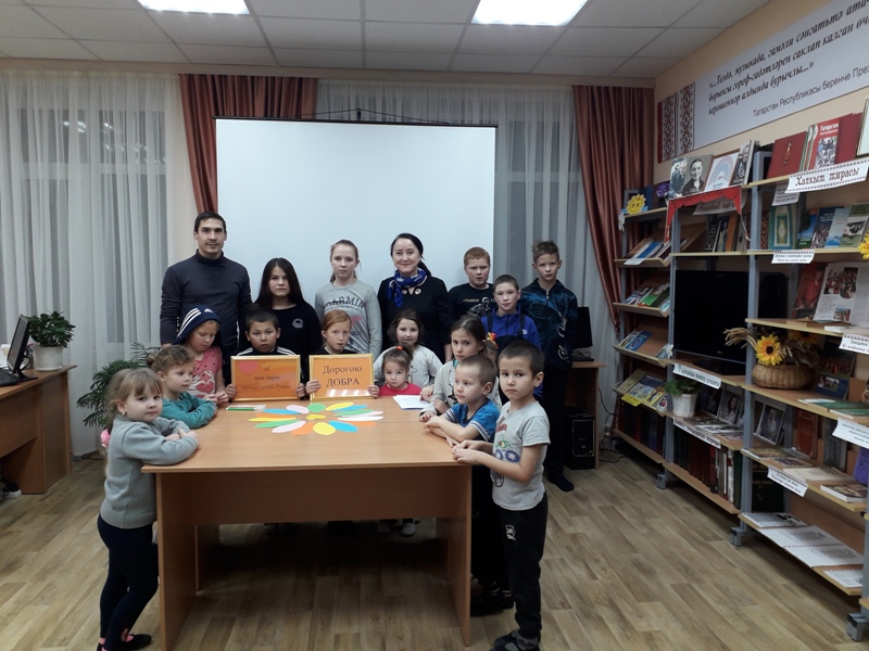 «Доброта - это солнце, которое согревает душу человека» М.Пришвин. Дети внимательно слушали рассказ библиотекаря и сами рассказывали истории о доброте и человечности людей. Учащиеся вспоминали свои добрые дела к родителям, бабушкам, дедушкам, учителям, сверстникам. Читали и слушали стихи, участвовали в играх «Круг доброты», «Сказочный герой-добрый или злой» и в творческом задании – составили аппликацию «Цветок доброты». Вниманию ребят была предложена книжная выставка «Я вам дарю тепло своей души», где представлены «добрые книжки». Также узнали о рельефно-точечном шрифте Брайля и как тяжело читать незрячим людям. В заключении мероприятия смотрели мультфильм «Цветик-семицветик» по сказке В.Катаева. От проведенного мероприятия у всех остались положительные эмоции и настрой на совершение добрых дел.