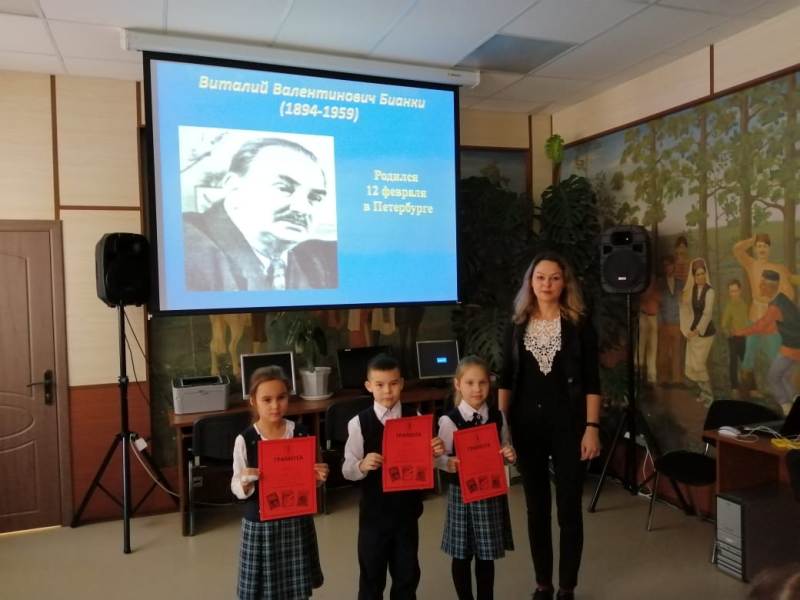 В 2019 году исполнилось 125 лет со дня рождения писателя, учёного Виталия Бианки и 95 лет некоторым его сказкам и рассказам. Этим датам была посвящена викторина «По лесным тропинкам В.Бианки» для учащихся 2 «Б» (кл. руководитель Иванова Т.А.), 2 «В» (кл. руководитель Мухамадеева Т.В.), 2 «Г» (кл.руководитель Бузаджи Г.Н.) классов школы №1 и 2 «А» класса (кл. руководитель Аликбарова А.Р.) школы №3, которую провела Детская библиотека.