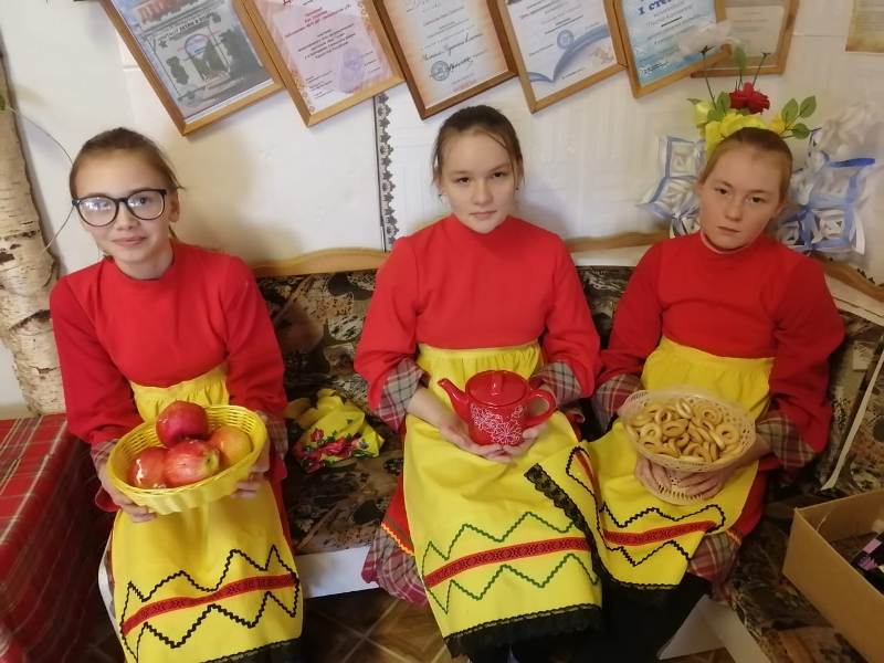 Программа была очень насыщенной, ведь о чае можно говорить много. Узнали, что говорили о чайных традициях и о культуре чаепития наши классики – Толстой, Чехов, Гоголь, Пушкин, Достоевский… Звучали стихи, вспомнили пословицы, отгадывали загадки и литературные отрывки. О пользе чая и о его свойствах рассказал Доктор чайных наук (Долгов Илья учащийся 8 кл.) Ведущие, учителя начальных классов Лариса Николаевна и Валентина Николаевна, научили как правильно и вкусно заваривать душистый, ароматный чай. А Андрей Долгов уч-ся 6 кл. прочитал смешное стихотворение «Как мужик чай варил». В России впервые узнали о чае в первой половине 17 века, но пили тогда его только богатые люди, весёлую сценку о появлении чая на Руси очень интересно показали юноши учащиеся 8-9 классов. Ну и какой же чайный праздник без весёлых, чайных частушек, озорные куплеты спели участники ансамбля «Тэремшур кускылиос». Среди гостей были милые бабушки, которые пришли с гостинцами и рецептами заваривания травяных чаёв. После мероприятия все дружно пили чай. Украсили мероприятие книжная выставка и стенд с картинами известных художников на тему чаепития. Девочек заинтересовала история появления чая на Руси, они с удовольствием взяли почитать книги.