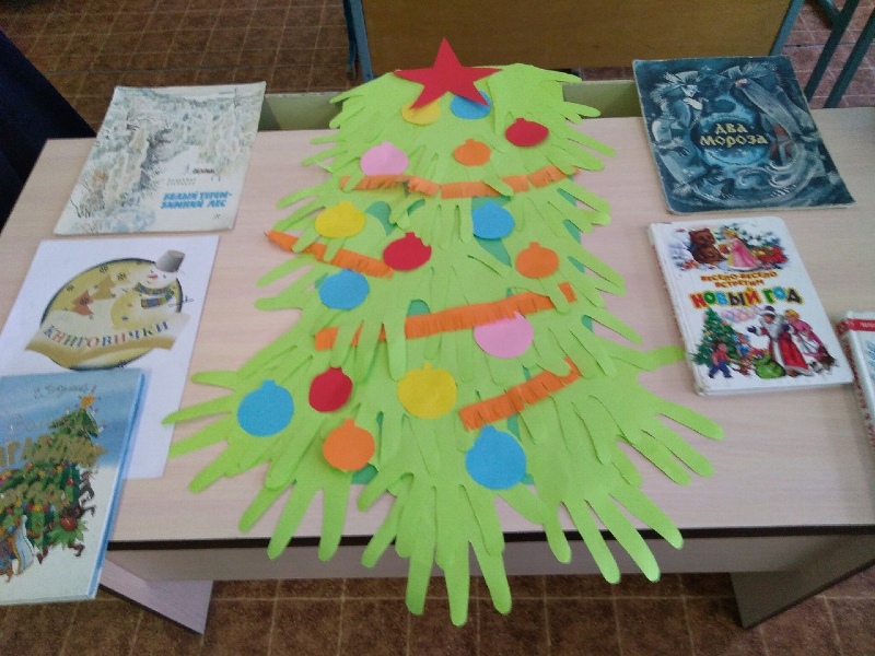 В рамках акции провели литературный час «Волшебный праздник всех народов». Прослушали произведения о зимних праздниках и поучаствовали в мастер-классе по изготовлению новогодней ёлки из цветных ладошек, украсили разноцветными фонариками для выставки «Новогодняя фантазия».
