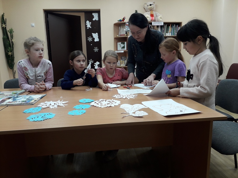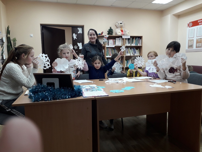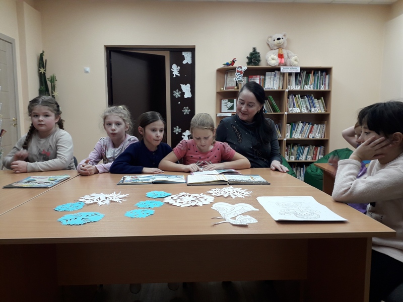 Ребята совершили путешествие в «Зимнюю литературию», внимательно послушали сказку В.Одоевского «Мороз Иванович» и участвовали в обсуждении сказки. Ребята выразили общее мнение, что в сказке не только прекрасно показана настоящая русская зима со снегами и метелями, с морозами и зимней природой, но самое главное мудрость сказки в том, что упорный труд приносит человеку выносливость, отраду и даже жизнь. Зима-это не только красивое время года, но еще и очень необычное. Она как большая загадка, которую только предстоит разгадать. Например: снег представляет собой настоящее произведение искусства и в мире нет двух одинаковых снежинок. Дети с удовольствием участвовали в мастер-классе «Волшебная снежинка»». Каждый смастерил свою узорную снежинку и символ Нового года симпатичного мышонка, которыми украсили библиотеку и подарили друзьям.