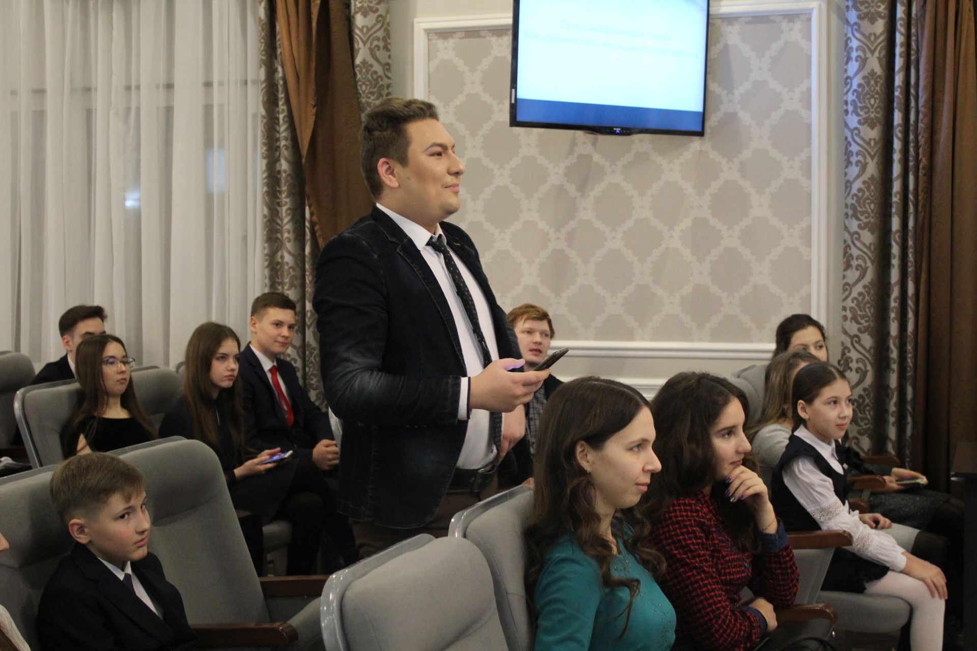 В пресс-конференции с главой приняли участие корреспонденты «Менделеевских новостей», выпускники школы журналистики и блогерства «АЙДАвМЕДИА», пресс-секретарь главы района, представители Совета молодёжи, блогеры, депутаты Детской районной думы, активная молодёжь химзавода имени Л. Я. Карпова, АО «Аммоний».