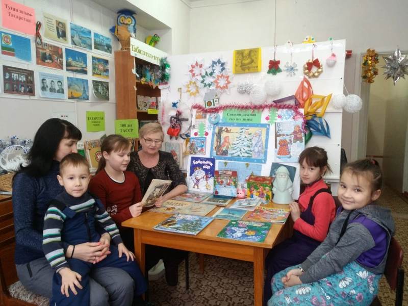 С детьми начальных классов и их родителями прочитали рассказ В. Одоевского «Мороз Иванович» и зимнюю сказку «Морозко». Пока ребята постарше читали рассказ «Мороз Иванович», дошкольники рассматривали красочные книжки, представленные на новогодних выставках, оформленных в библиотеке.