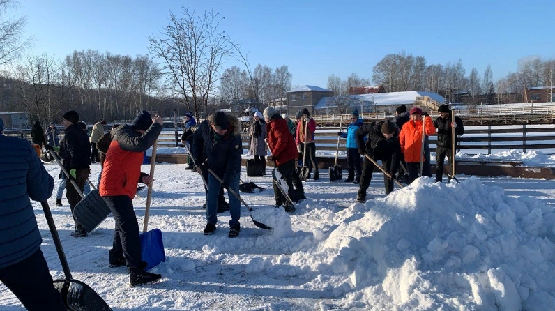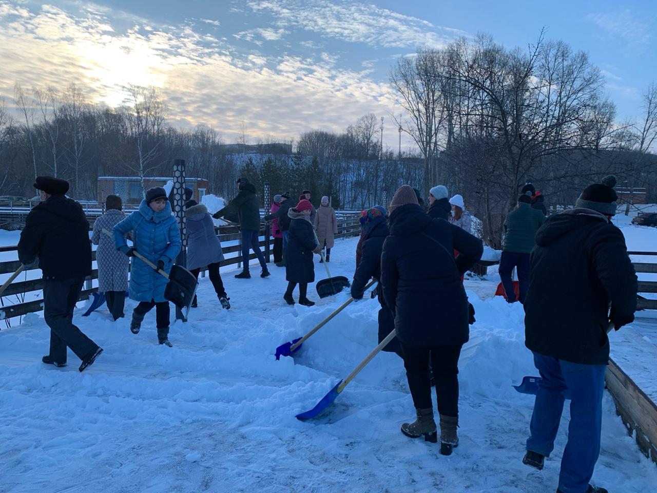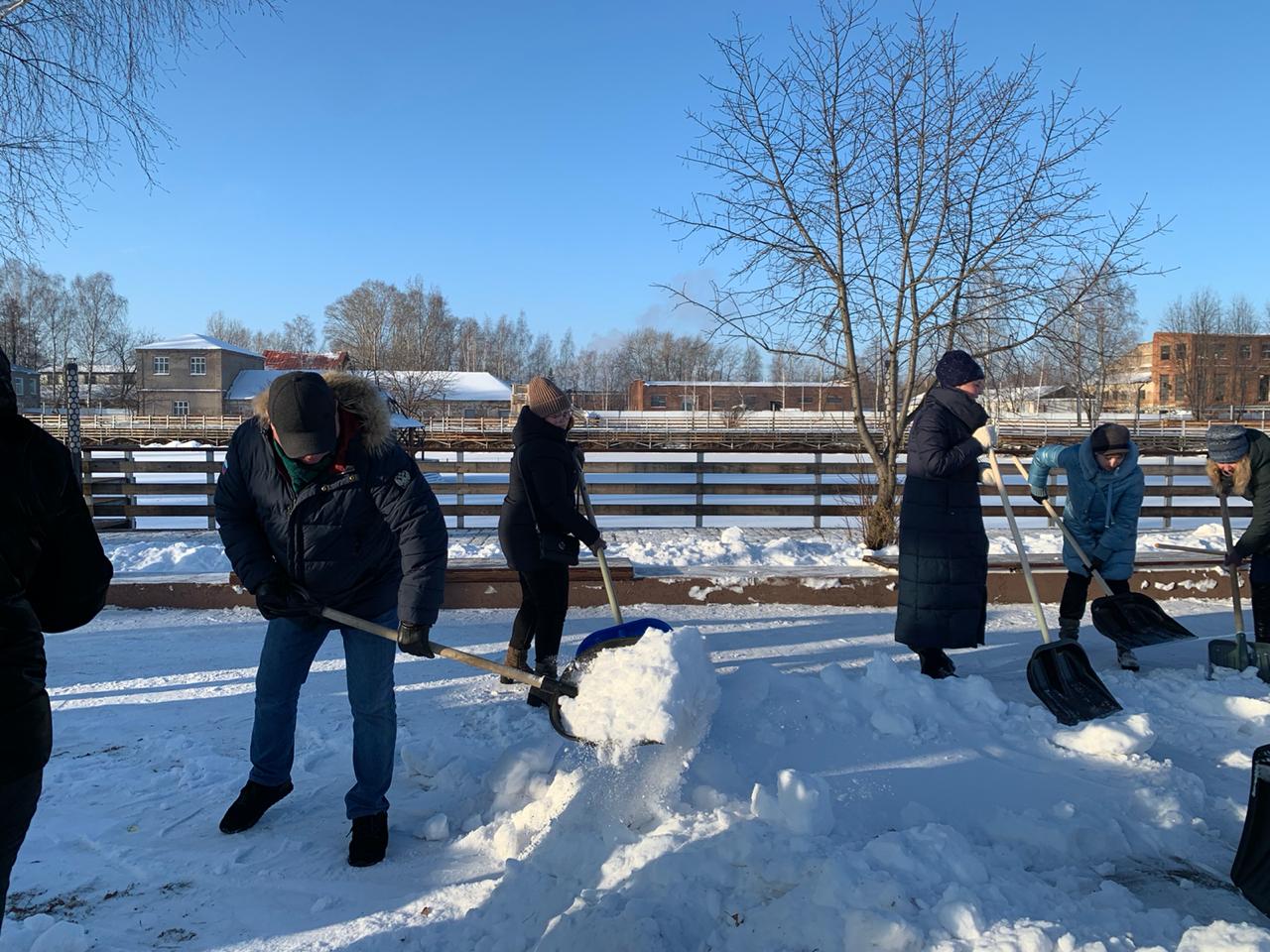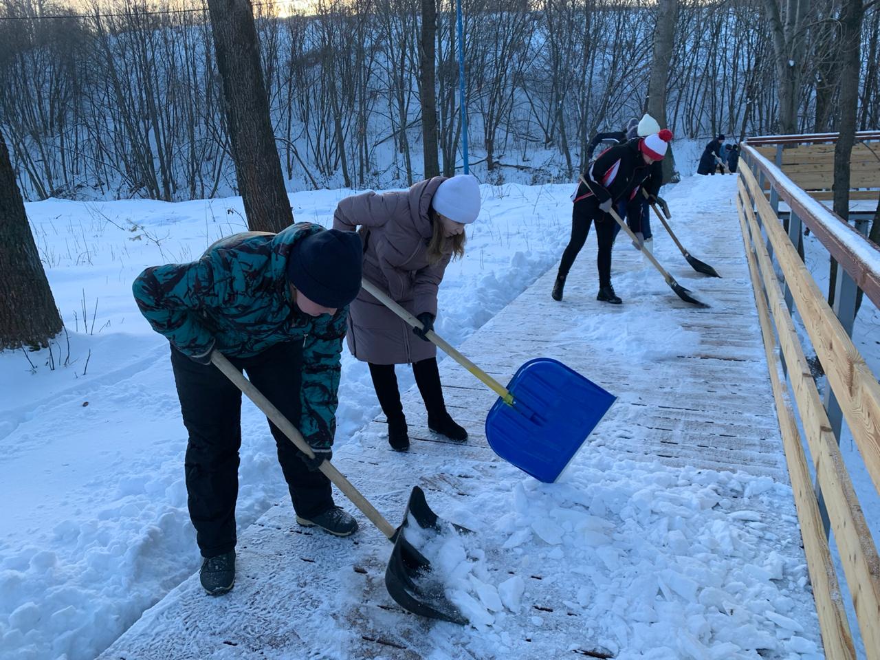 Чтобы привести в порядок территорию около пруда и подготовиться к Рождественской ярмарке менделеевцы вооружились лопатами и активно убирали снег.