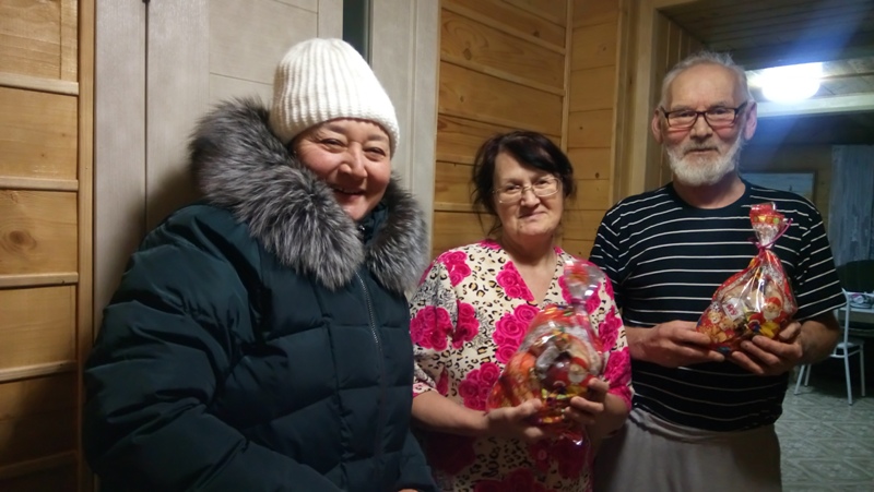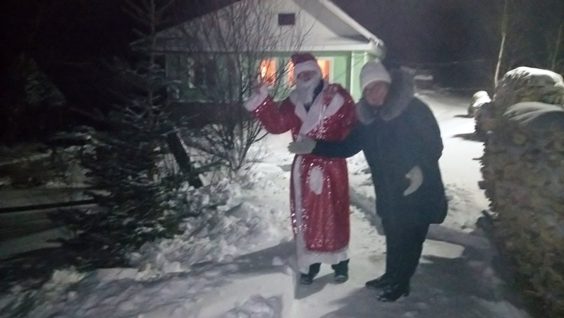Дедушка Мороз посетил именно тех, кто не смог по тем или иным причинам побывать на елке. Жители были неожиданно удивлены, и мы всем смогли поднять настроение. Без подарков не обошлось.