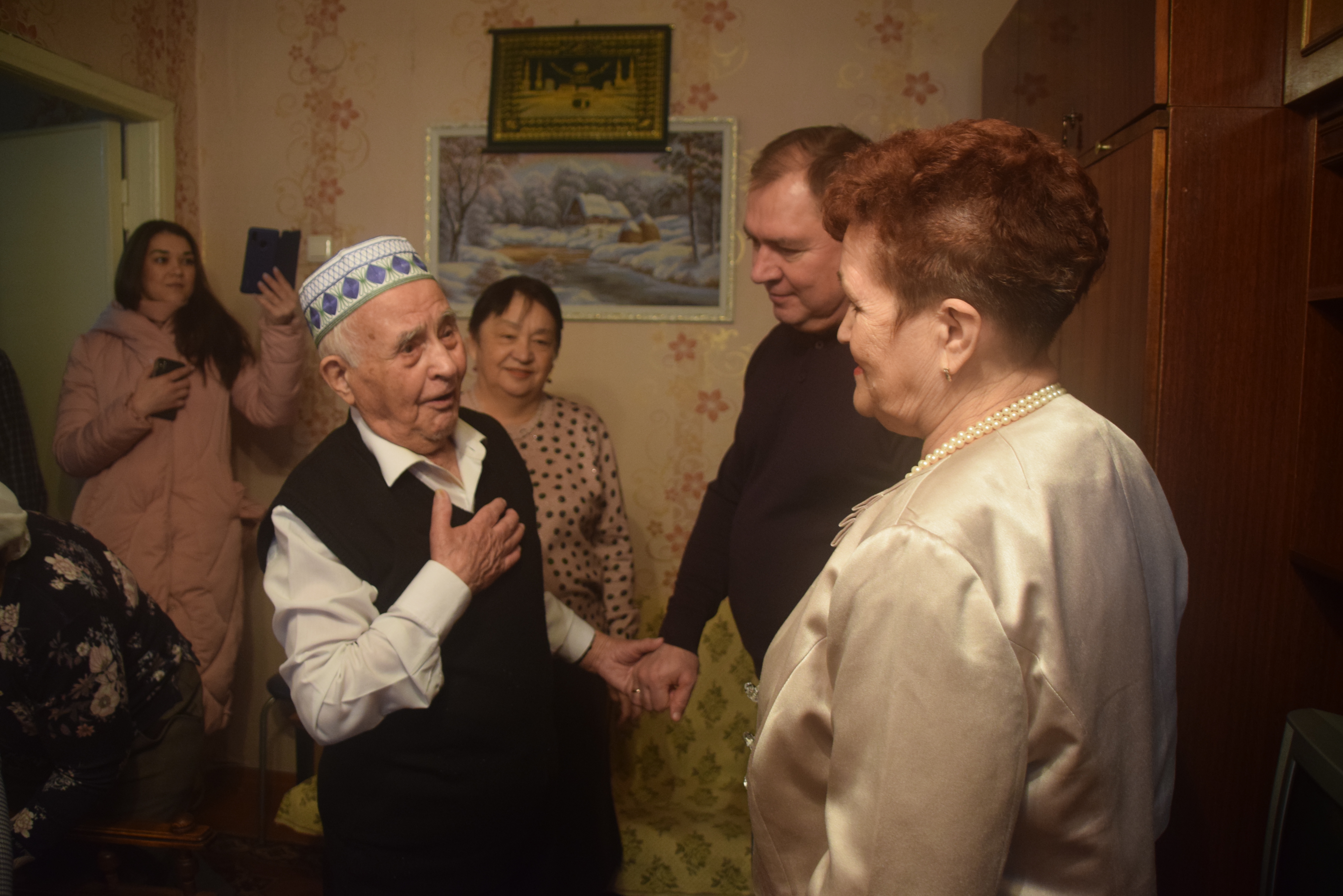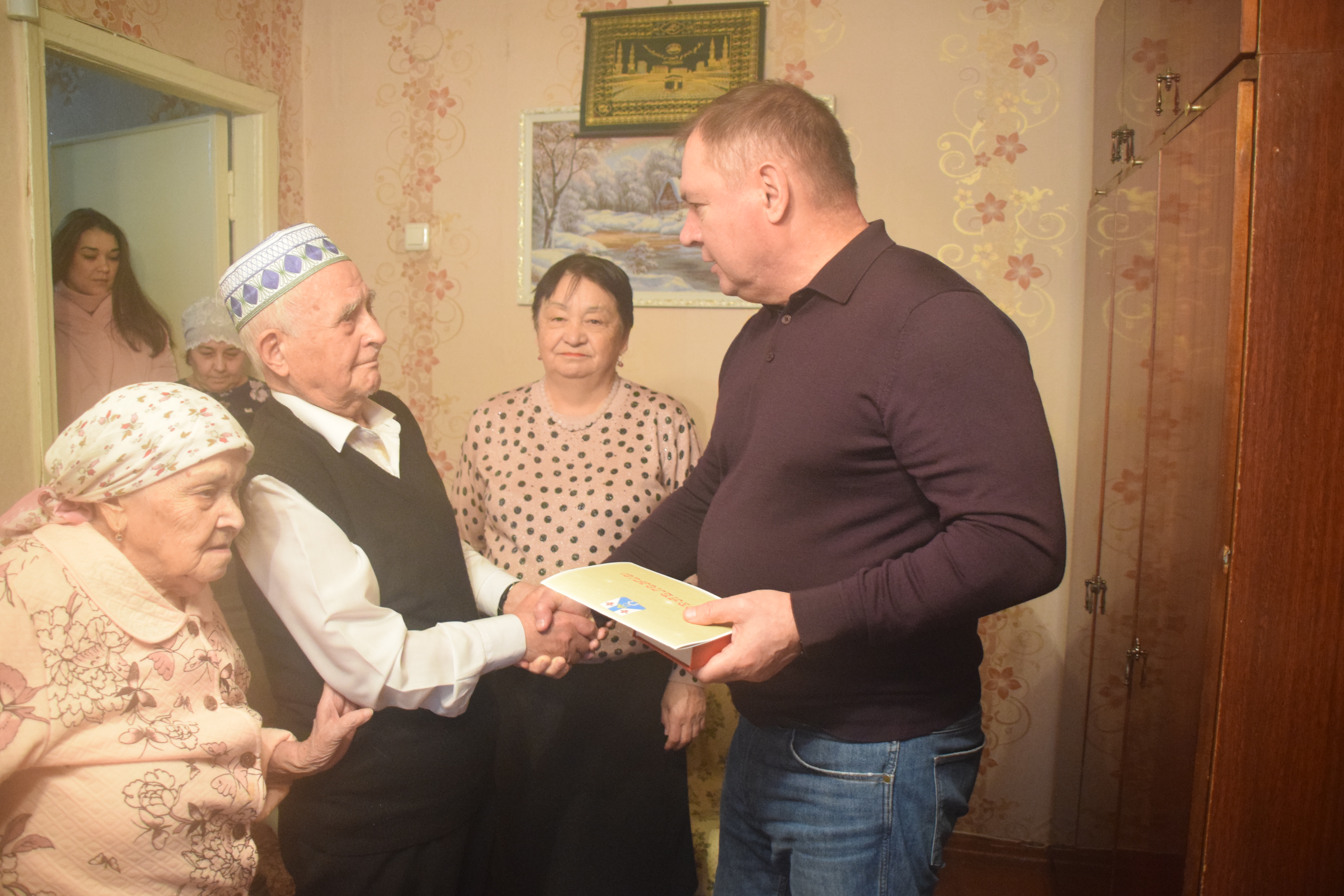 В этот торжественный день Билала Зялаловича пришли поздравить Глава района Валерий Чершинцев, председатель Совета ветеранов Любовь Сорокина, начальник социальной защиты Фаина Козырева, председатель ТОС «Бондюжский» Гульсина Загрутдинова.