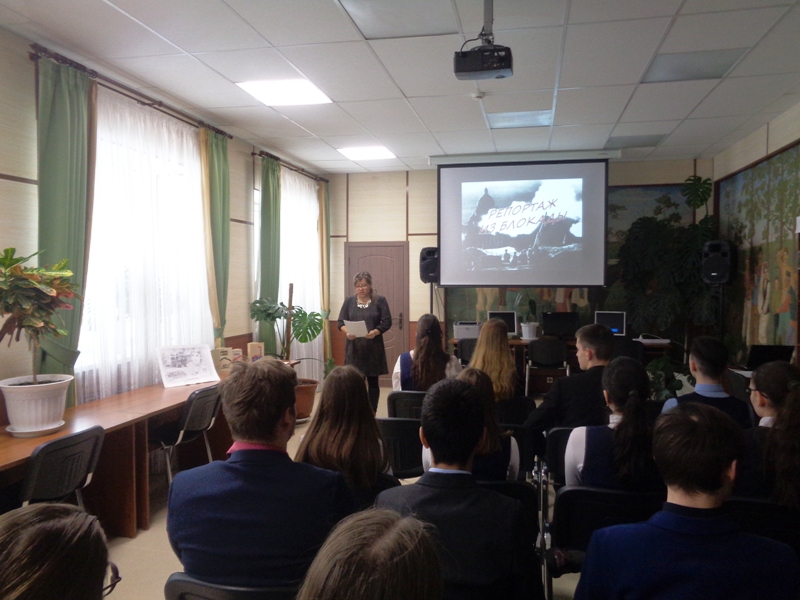 27 января сотрудники Центральной библиотеки провели для учащихся 11-го класса школы №1 историко-поэтический час «Репортаж из блокады», посвящённый памятной героической дате в истории России – снятию блокады Ленинграда.