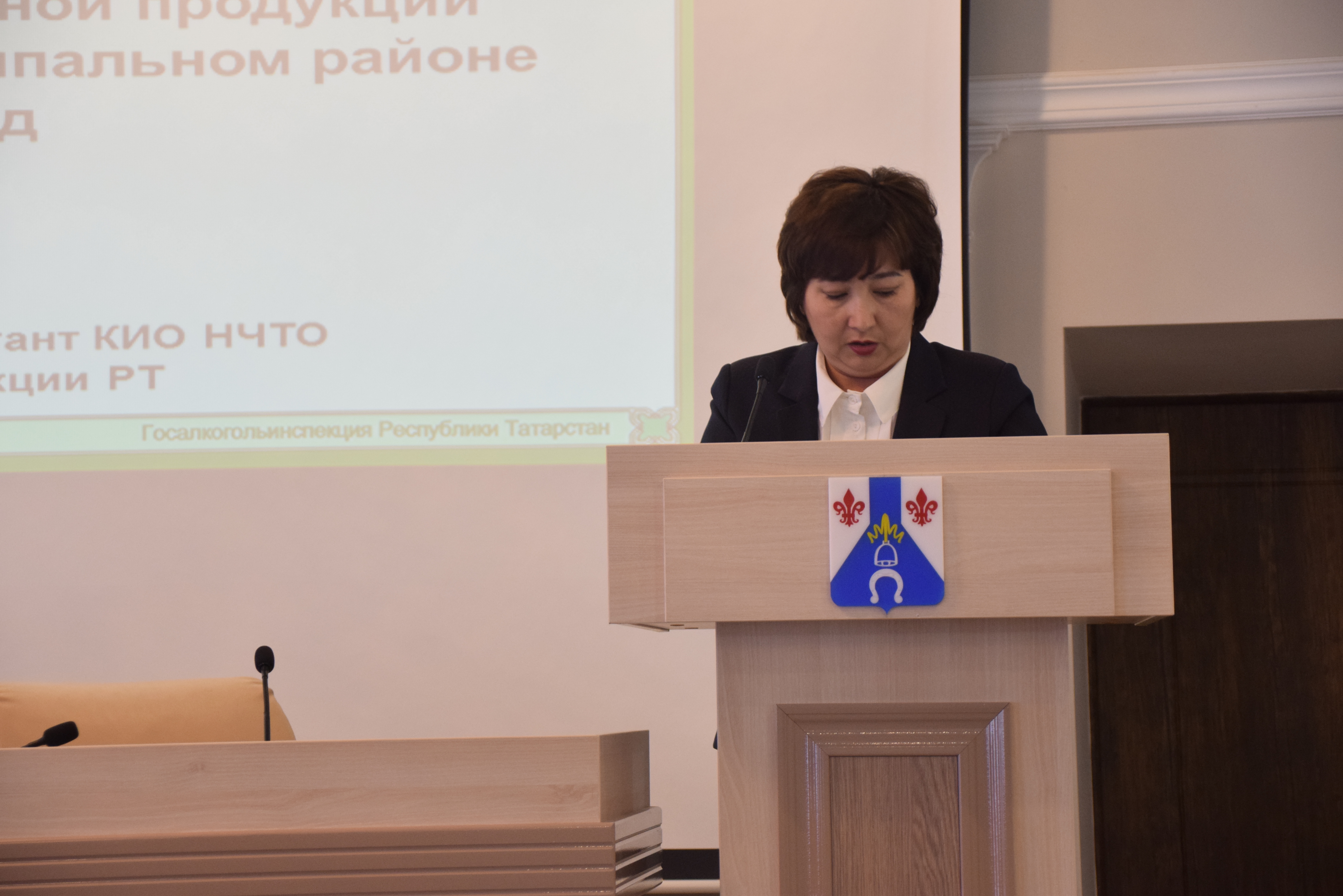 О реализации алкогольной продукции в Менделеевском муниципальном районе за 2019 год доложила консультант контрольно-инспекционного отдела Набережночелнинского территориального органа Госалкогольинспекции РТ Досманова Эльмира.