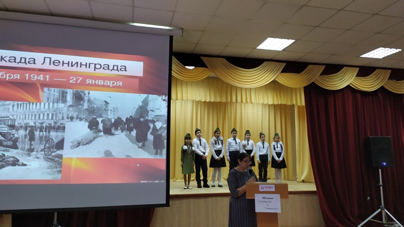 Во время мероприятия был показан документальный фильм «Непокоренные», подготовленный Валеевой Л.И. Библиотекарь Останина И.М. представила книгу Ильи Миксока «Жила была…». Особенными чувствами прониклись дети к судьбе маленькой девочки Тани Савичевой. Ее дневник стал одним из символов Великой Отечественной войны. Страницы дневника дети 4 класса читали с большим волнением. В их же исполнении прозвучали стихи, написанные поэтами в блокадные дни и послевоенное время. Участники мероприятия почтили память погибших ленинградцев минутой молчания.